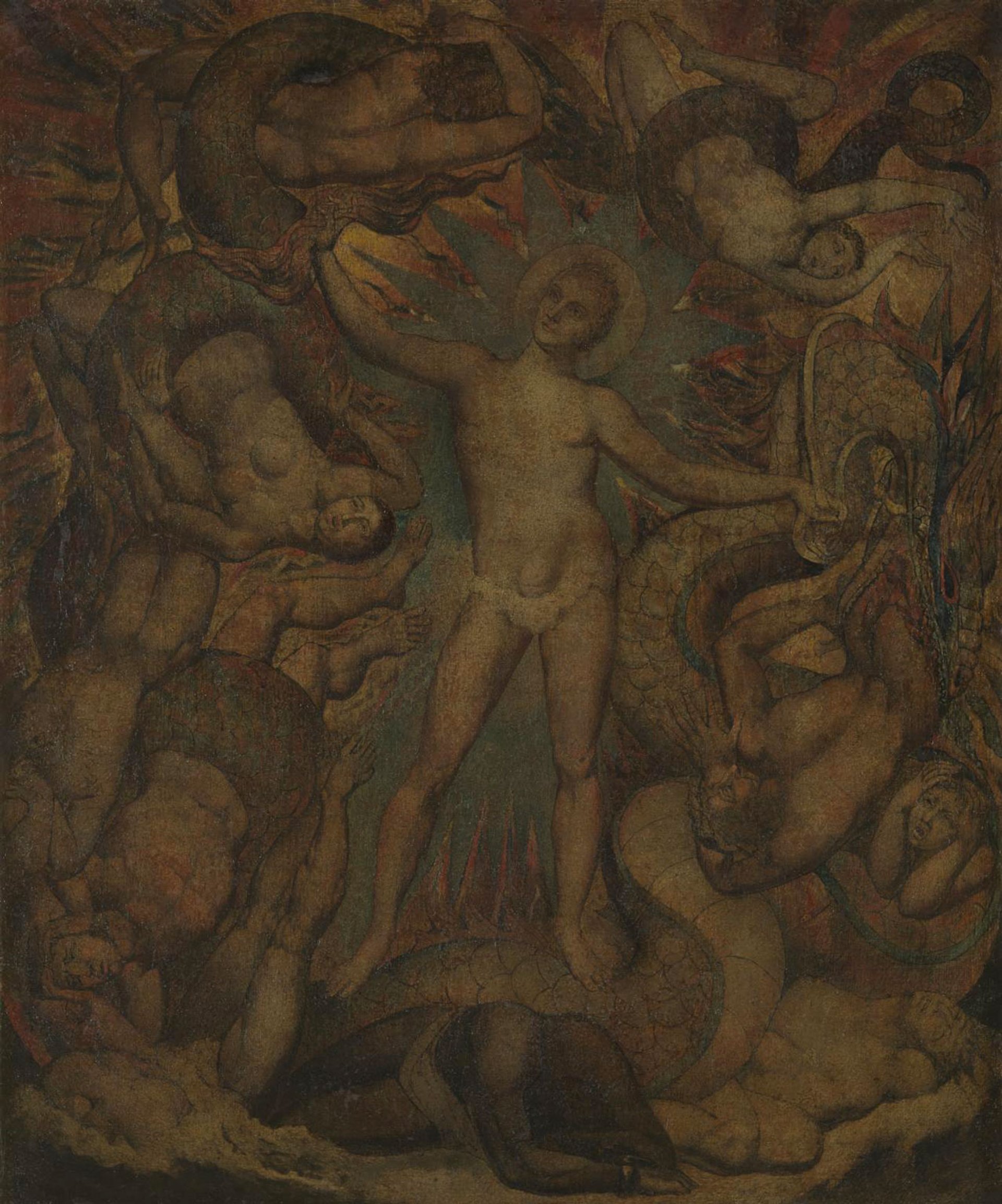 In this context, the paintings appear to be mocking the pretensions of Pitt and Nelson, those “sons of pride”. Here Blake’s innate incomprehensibility can be said to have been an advantage, as his criticism of such powerful men was largely missed at the time. The paintings did not, however, capitalise on this and find a popular audience. In the eyes of the general public, seeing their politicians and admirals commanding monsters while half-naked and Christ-like was just plain weird.