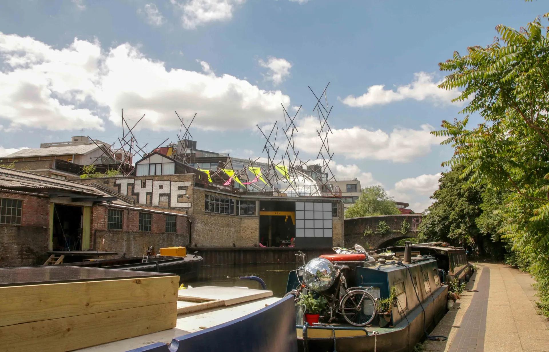 The structure All Along the Watchtower was built by the organisation Project Bunny Rabbit after winning the Antepavilion Early Special Summer Commission. Made from bamboo, wire and flags, it is described as “an agile, demountable, movable tensegrity structure designed as a functional and symbolic centre for activism in Hackney” on Project Bunny Rabbit's Instagram page. The commission announcement, renders and construction of the work are documented on their public page as is the inspiration for a similar structure used at protests by Extinction Rebellion.