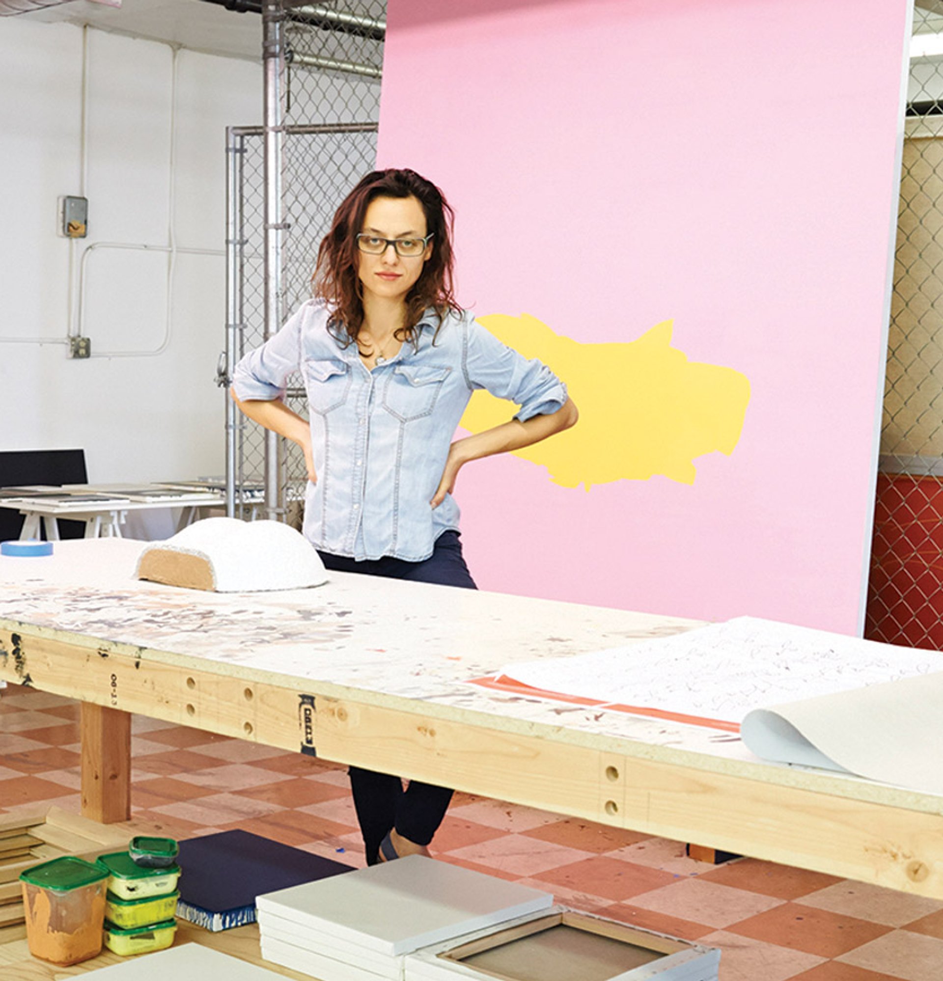 Katrina Palmer in front of her work titled HELLO Co-commissioned by Waterfronts and Metal; Photo: Thierry Bal