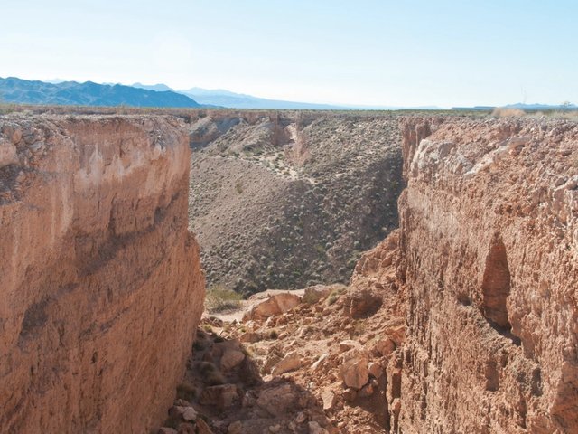 Double Negative, located on a 60-acre site, comprises two 50ft-deep trenches dug across a canyon on the eastern end of the remote flat-topped mesa. It required the displacement of more than 240,000 tons of desert sandstone with dynamite and bulldozers.