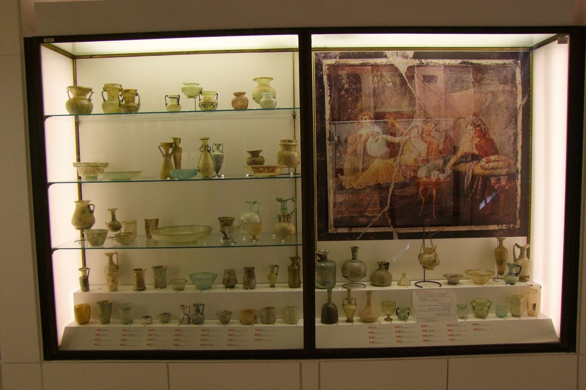 The vitrine of glass vessels at the Archaeological Museum of the American University of Beirut before the explosion Courtesy of the AUB Office of Communications and Archaeological Museum