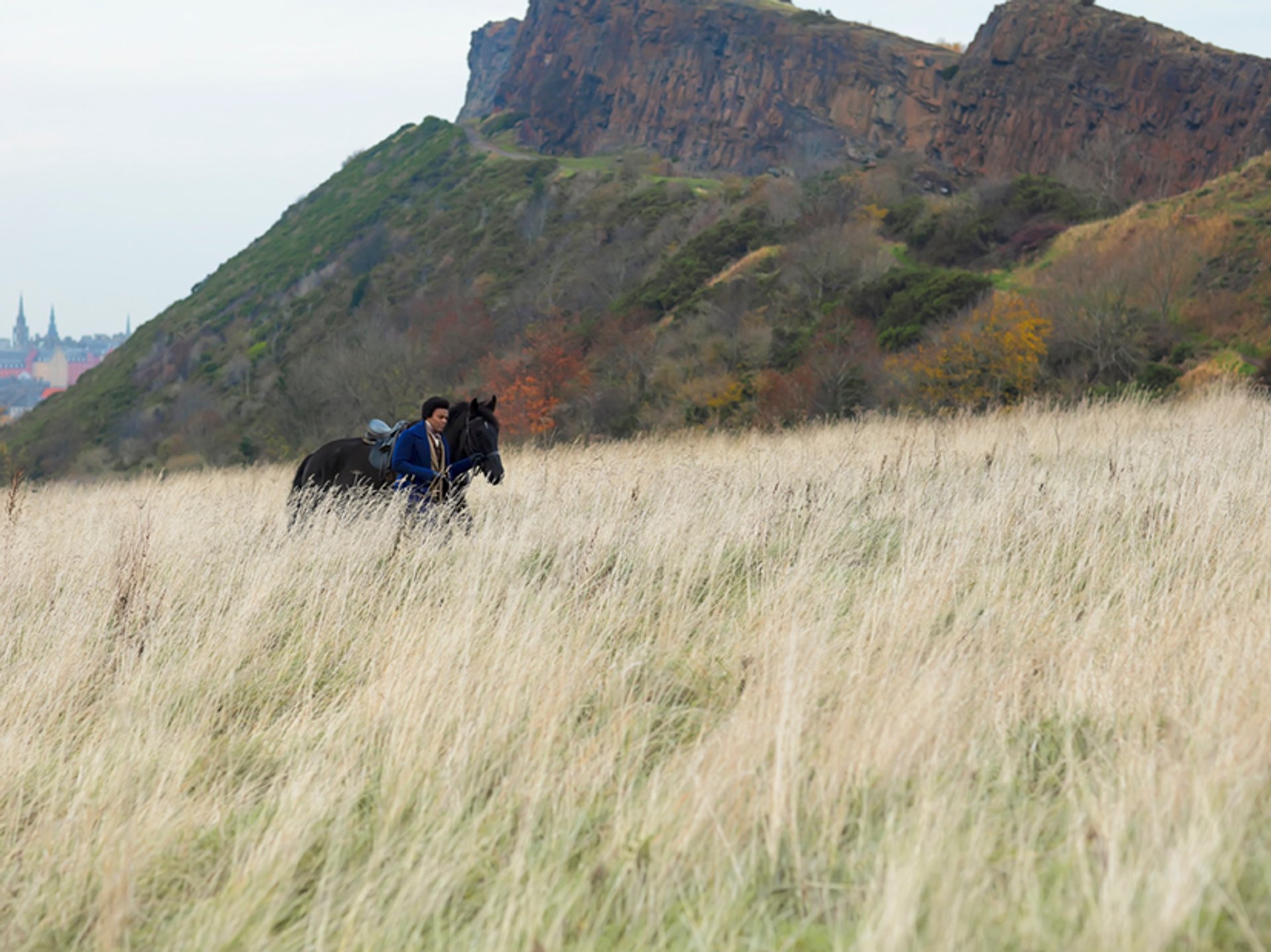 The film depicts Douglass's first visit to Scotland in 1846, during which he took his new last name from a character of Sir Walter Scott. In the work, Douglass strides out as a free man in the countryside around Edinburgh, his clothes as lush and colourful as the landscape, but offset by the swinging feet of a lynching victim and FBI drone footage of protests in Baltimore over the death of a Black man in a police arrest.