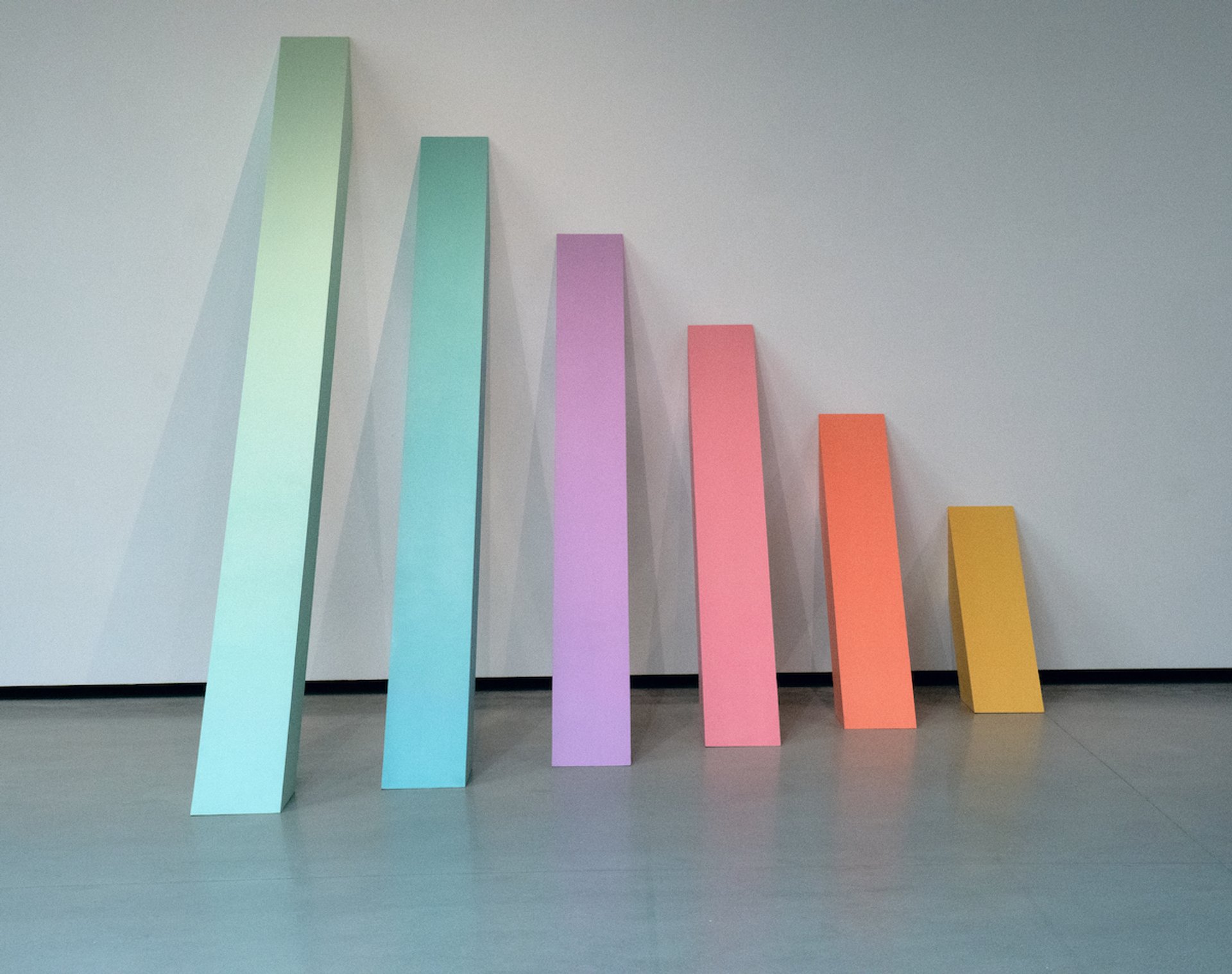 Around 125 paintings, drawings, ceramic sculptures, and prints by the artist are in the show, including several little-known bodies of work, such as Minimalist sculptures Chicago made in Los Angeles in the 1960s, which demonstrate her earliest investigations of the rainbow colour palette, and car hoods from the same period that she made while enrolled in auto-body school to expand her painting technique. Some of these works are juxtaposed with her signature psychedelic paintings made in the same vibrant palettes.