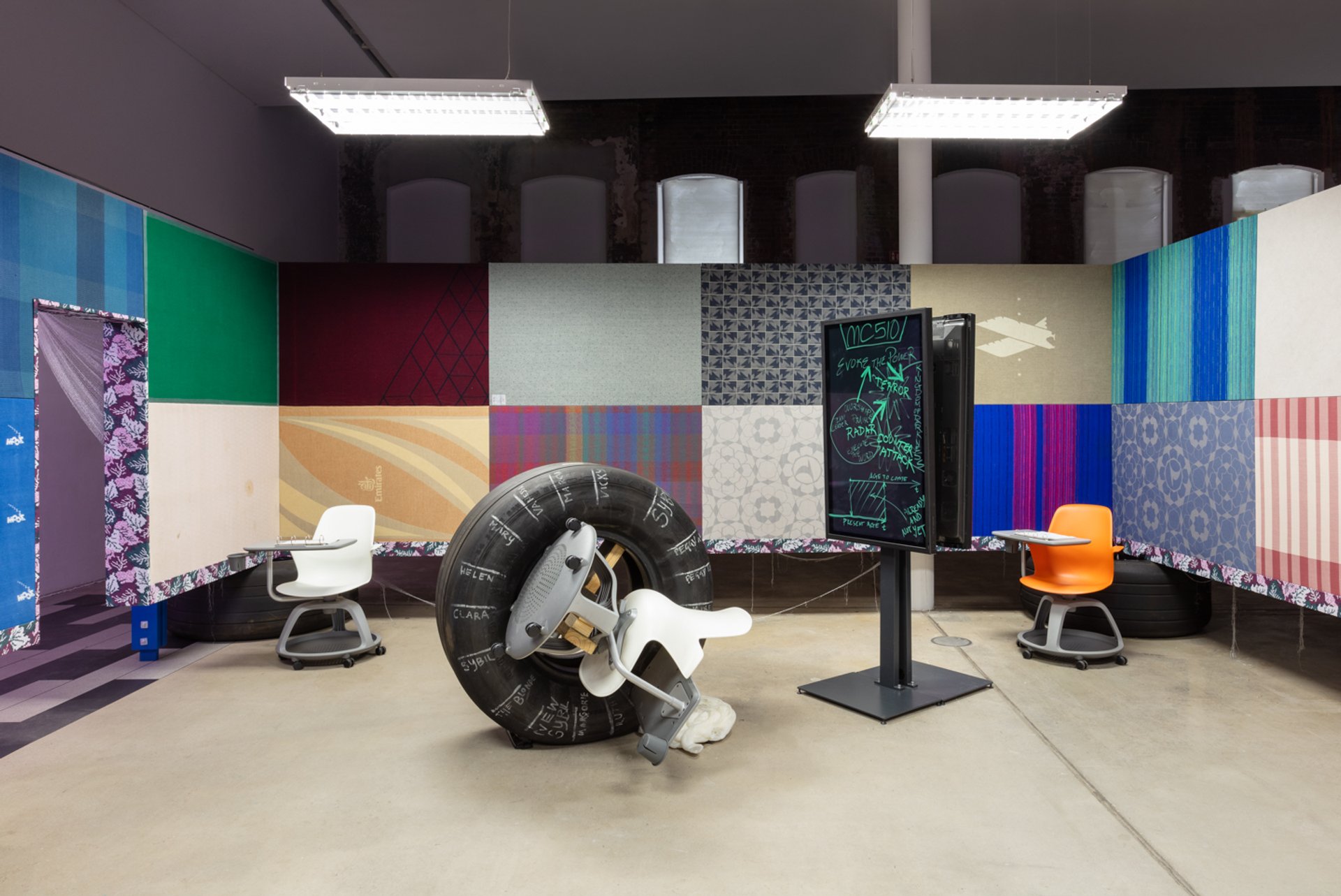 Apparently West interested in a work called to Serene Velocity in Practice: MC510/CS183, a sculptural installation that reflects on two unrelated university courses, one taught by Peter Thiel, the controversial libertarian financier, and another by the Evangelical Christian pastor John Wimber, a founder of the neocharismatic Vineyard churches. “Kanye seems to have resonated with how this work deconstructs the distribution notions of industry, power and faith, through academic institutions and the media,” Gritz said.