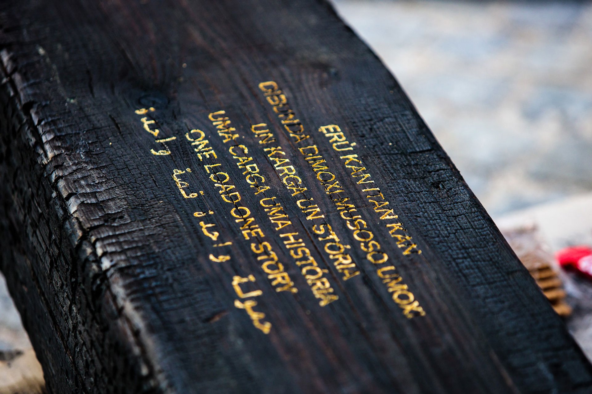 One of the phrases printed onto the woodblocks Photo: Creative Agency (Pedro Machado)