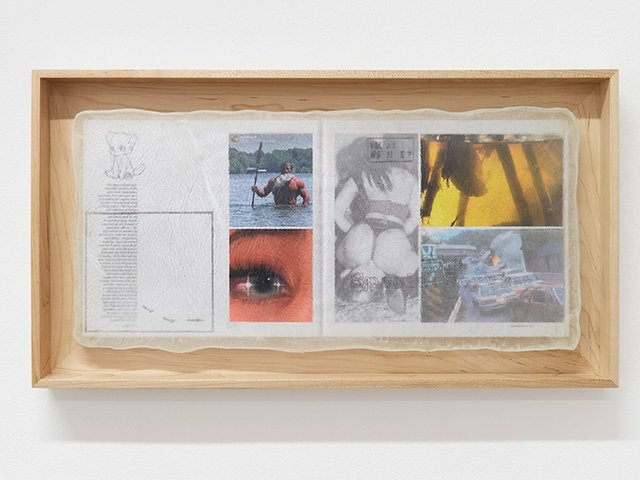 Fraser’s work takes us back to sources of his childhood wonder and fascination, a number of which he has cast in resin. Several of these call back to English fun fairs: a series of holographic goldfish in resin resembling plastic bags filled with water; candy-coloured primed fireworks arranged like a fossilised rock collection. Further holographic works include a self-portrait in resin, formed of 10 layers that produce the effect of his face floating underwater.