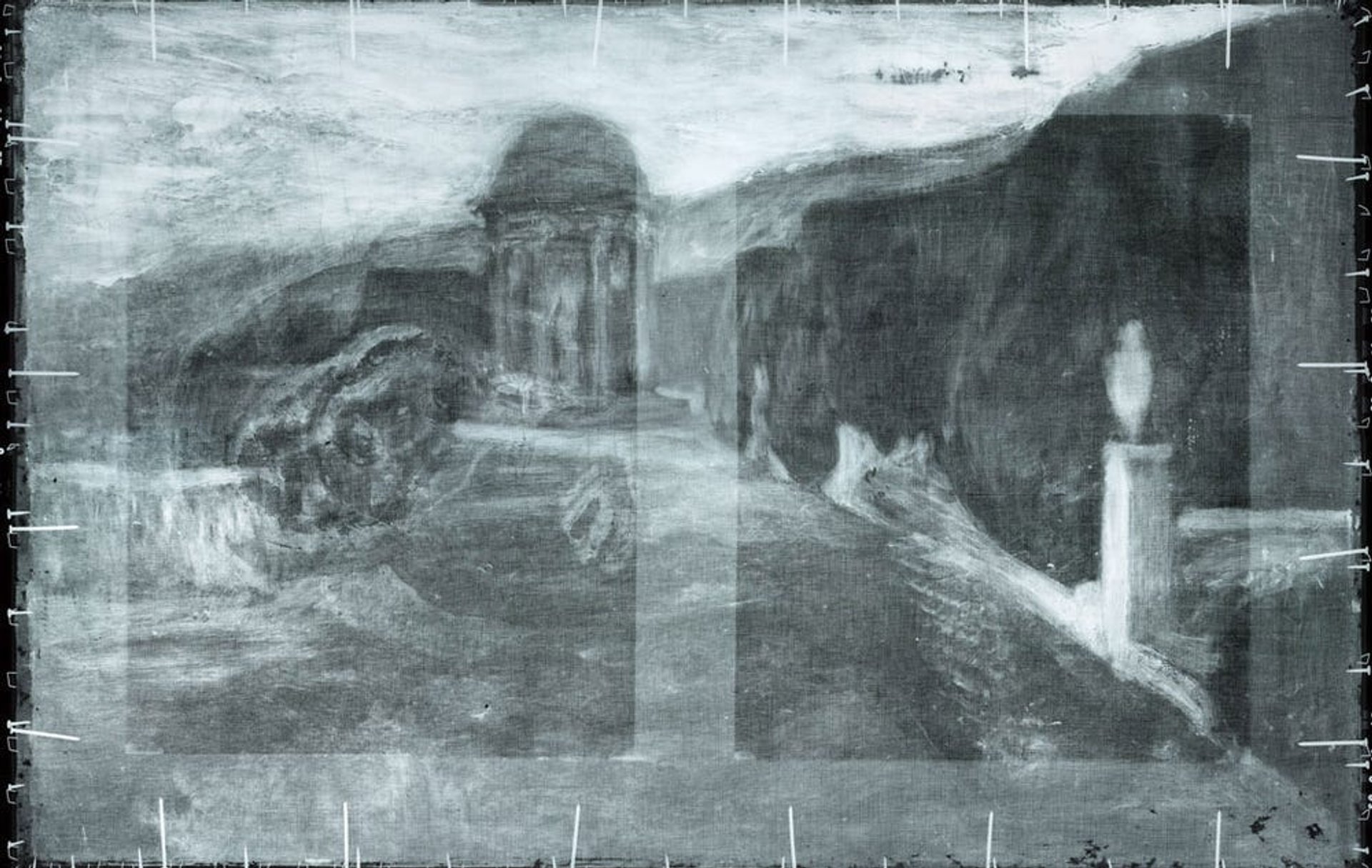 In 2018, researchers at the Art Gallery of Ontario released X-ray scans of this hidden painting beneath Picasso's The Crouching Beggar. The artist used the mountains in the painted-over landscape to shape the curves of his subject's back Photo: Art Gallery of Ontario