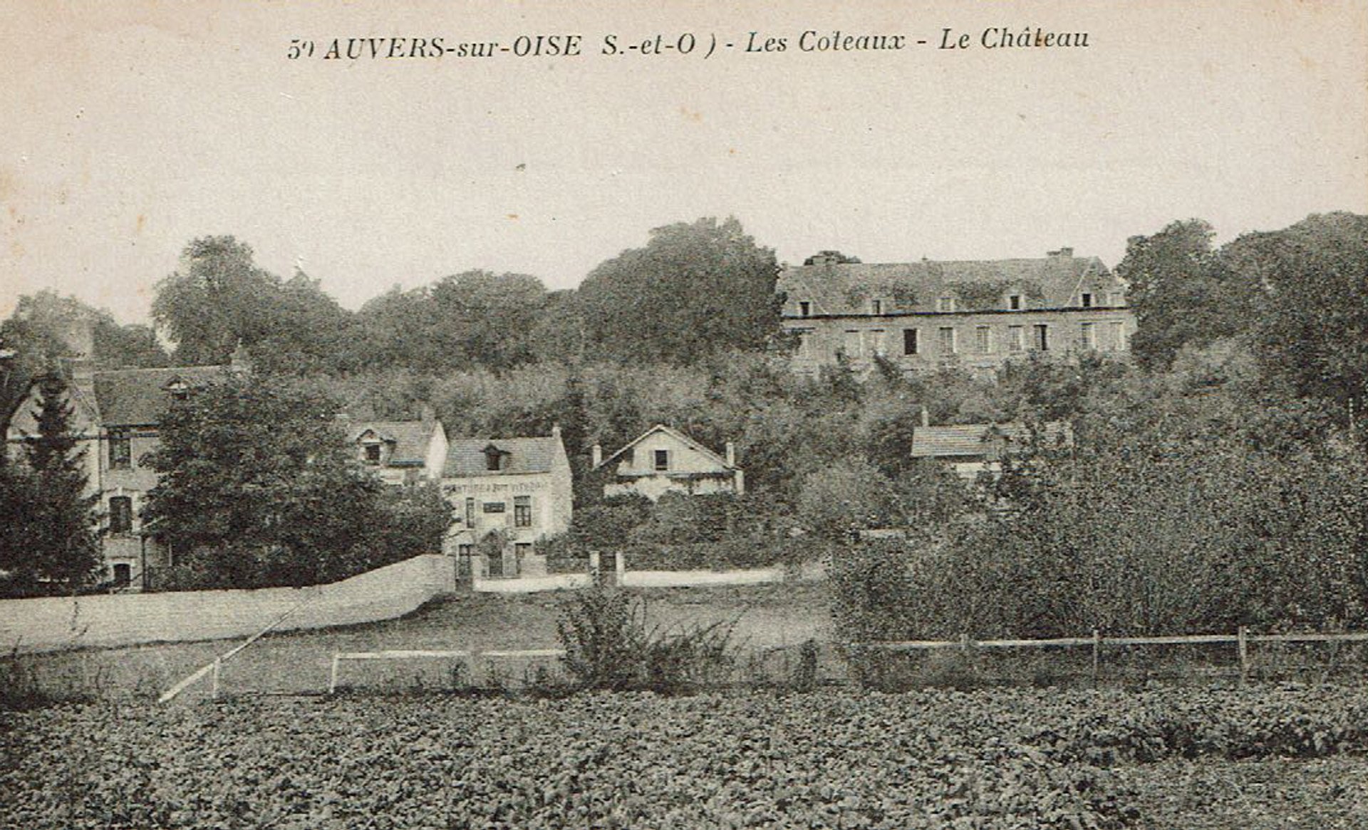 A view towards the château of Auvers, postcard, 1920s (when the village was becoming more built-up)