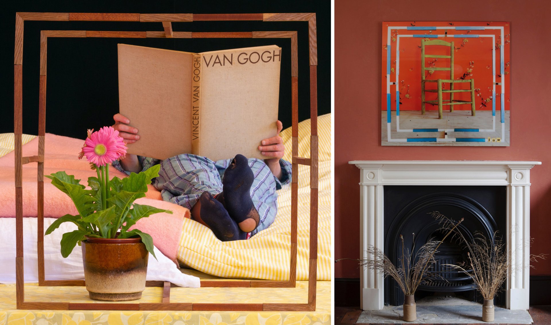 A photograph from the installation “Life and its most trivial particulars” by Brian Griffiths and Frank Kent and another photograph in situ, hanging on the wall in the Van Gogh House London Courtesy of the Van Gogh House London