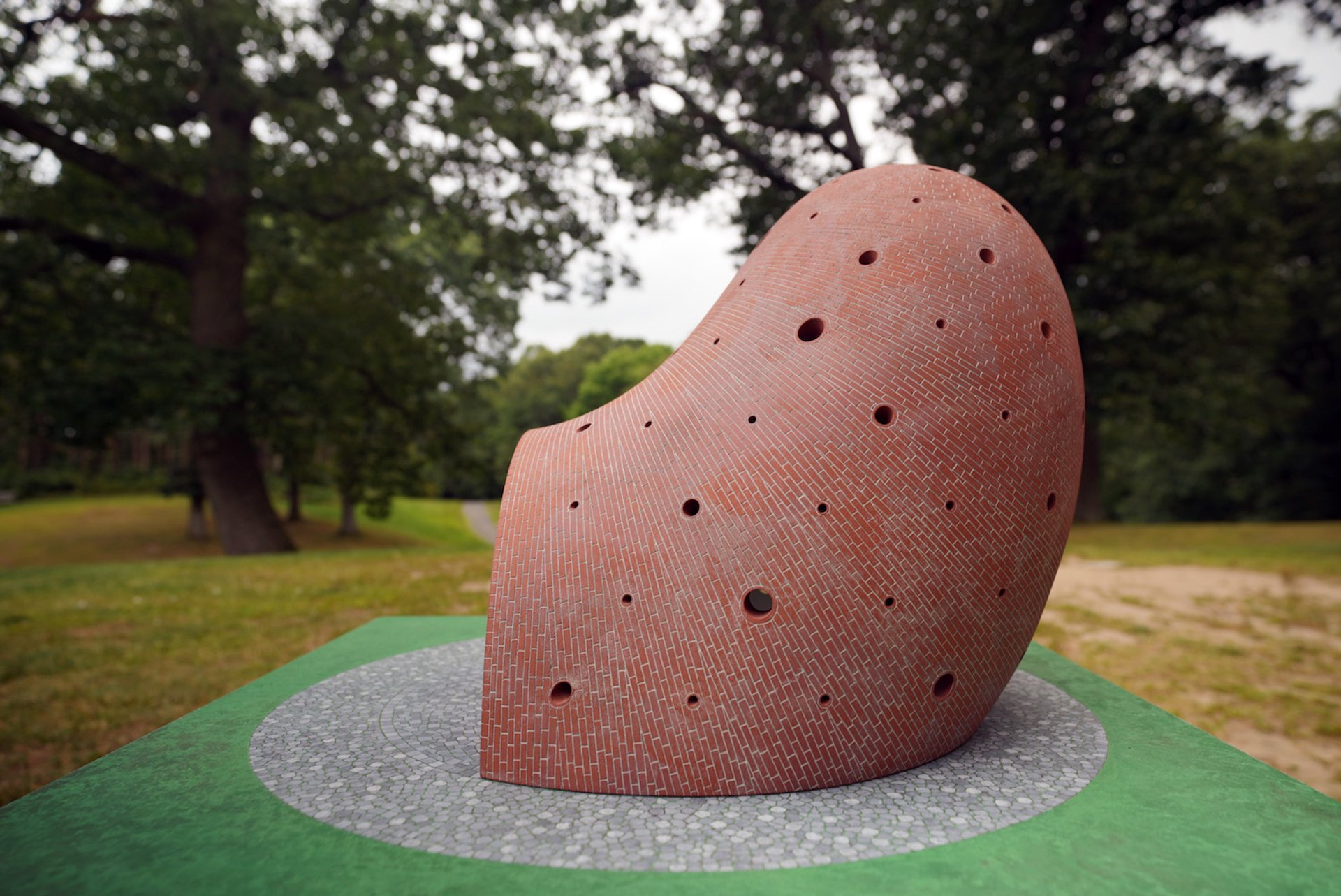 The dome-like sculpture consists of nine segments and measures 19 ft in diameter, and could provide a shelter for visitors—as well as the wildlife that roam the grounds year-round. Like much of the artist’s deeply referential work, its design is rich in historical and contemporary references, from Nubian vault-building techniques, an ancient building technique using mud bricks and other raw materials, to the brick-and-stone Seventh Regiment Armory on the Upper East Side in Manhattan.