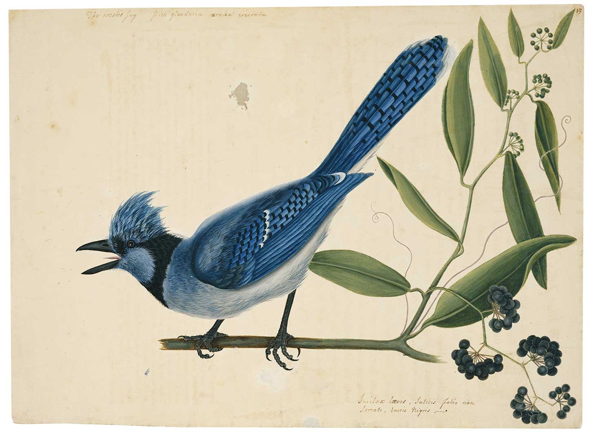 Catesby’s The Blew Jay and the Bay-leaved Smilax (1722-25), which conveys the bird’s gestures in its natural environment Royal Collection Trust © Her Majesty Queen Elizabeth II 2021