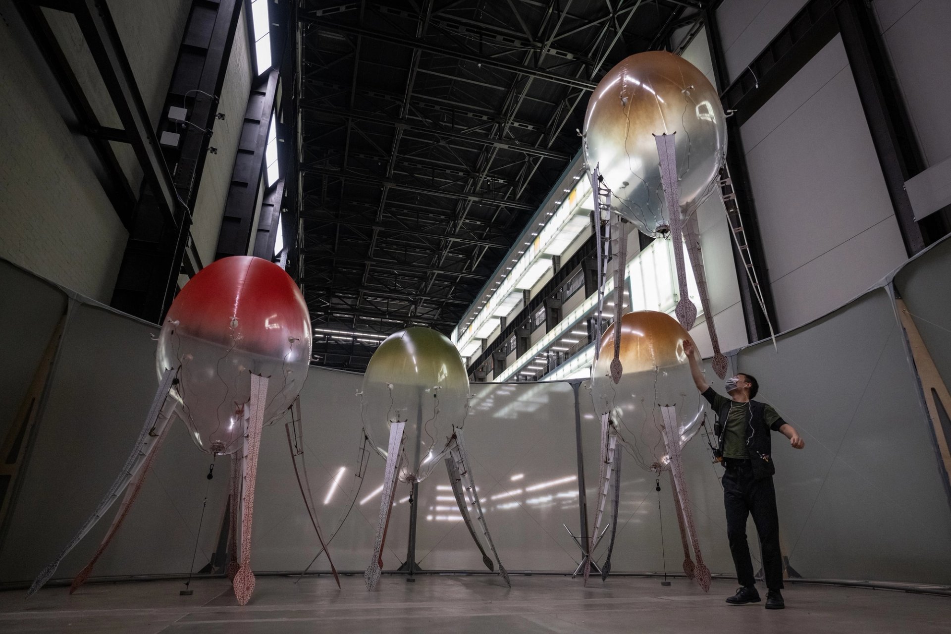 Two species of intelligent robots have moved into some prime, Thames-side real estate: Tate Modern’s Turbine Hall. Collectively named aerobes, the floating orbs that the New York-based artist Anicka Yi has created to inhabit the cavernous space are called planulae (the hairy, bulbous ones) and xenojellies (the ones with patterned tentacles). Inspired by ocean life forms and mushrooms, the helium-filled shapes move around using rotors and a small battery pack. Together, they create an “ecosystem” within the museum, Yi says, interacting with their environment and visitors, and displaying individual and group behaviours.