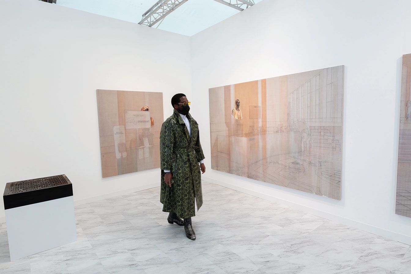 At Frieze Sculpture, Colón is showing Quantum Shift (Parabolic Monolith Sirius Titanium) (2021), a sleek, phallic-looking object created from carbon fibre developed for advanced aerospace technology. The work took 18 months to produce and involved an extensive team of fabricators.