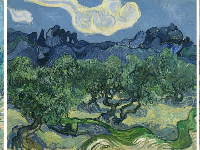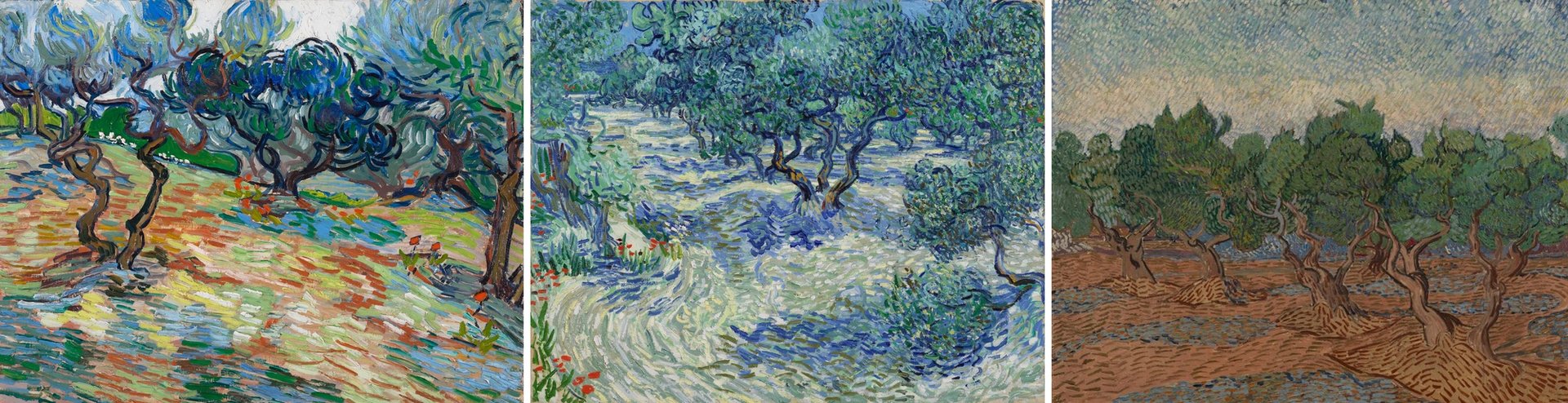Van Gogh’s Olive Trees (June 1889), Olive Trees (June 1889) and Olive Grove (November 1889) Courtesy of the National Galleries of Scotland, Edinburgh; Nelson-Atkins Museum of Art, Kansas City, Missouri (photo: Gabe Hopkins); and Van Gogh Museum, Amsterdam (Vincent van Gogh Foundation)