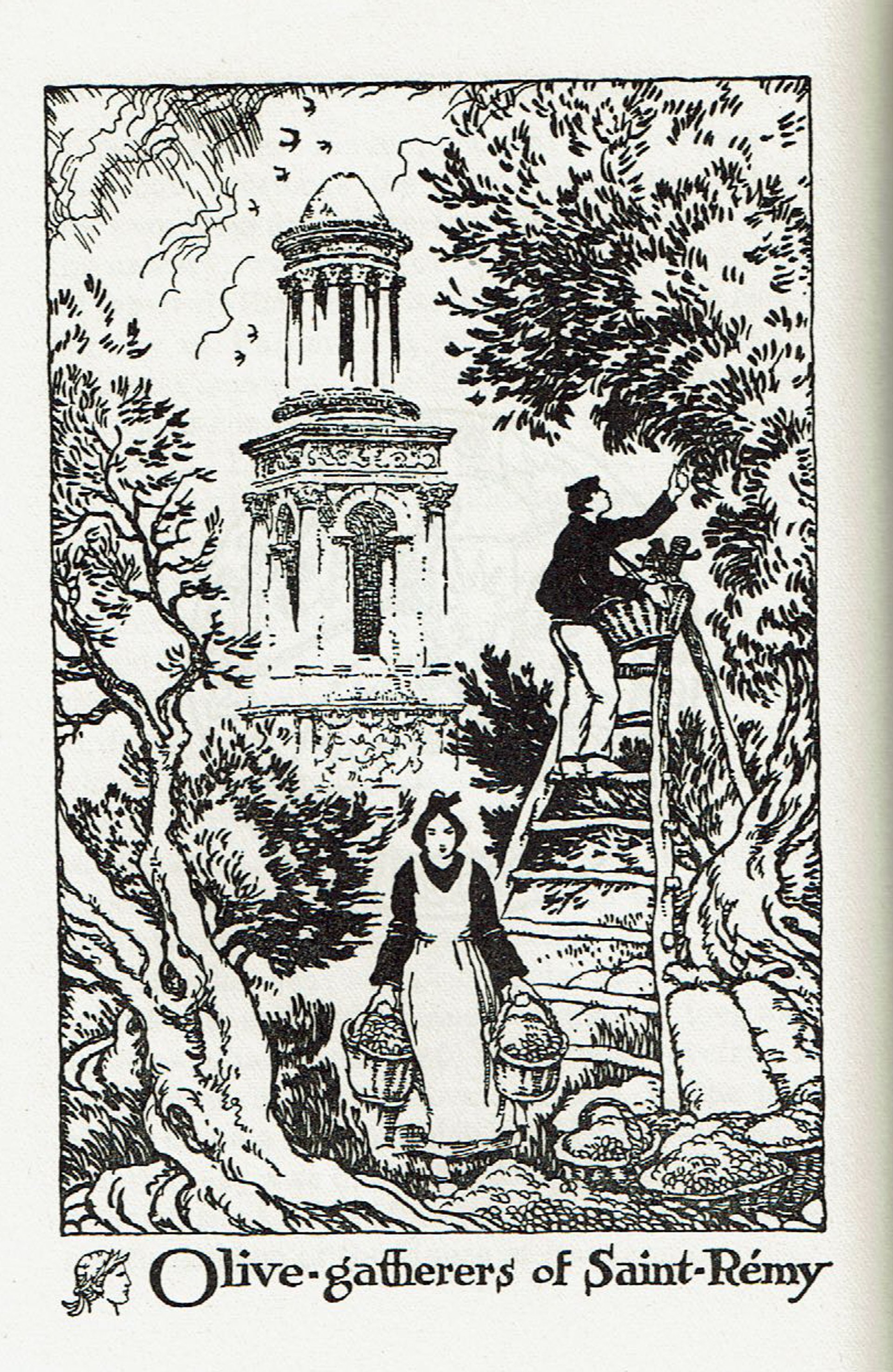 Thornton Oakley’s Olive-gatherers of Saint-Rémy in Amy Oakley’s book, The Heart of Provence (1936)