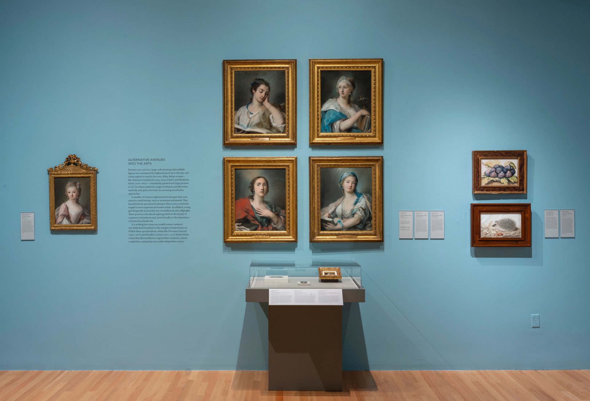 Installation view of By Her Hand: Artemisia Gentileschi and Italian Women Artists, 1500-1800 at the Wadsworth Atheneum Museum of Art.