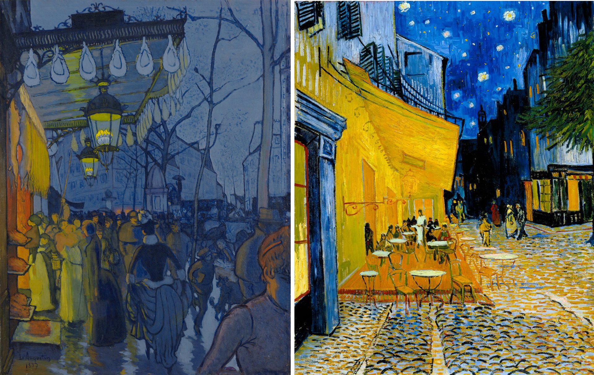 Louis Anquetin’s Avenue de Clichy (Five O'clock in the Evening) (1887) and Van Gogh’s Terrace of a Café at Night (Place du Forum) (September 1888) Anquetin: Wadsworth Atheneum Museum of Art, Hartford, Connecticut (Ella Gallup Sumner and Mary Catlin Sumner Collection Fund, 1966.7); Van Gogh: Kröller-Müller Museum, Otterlo