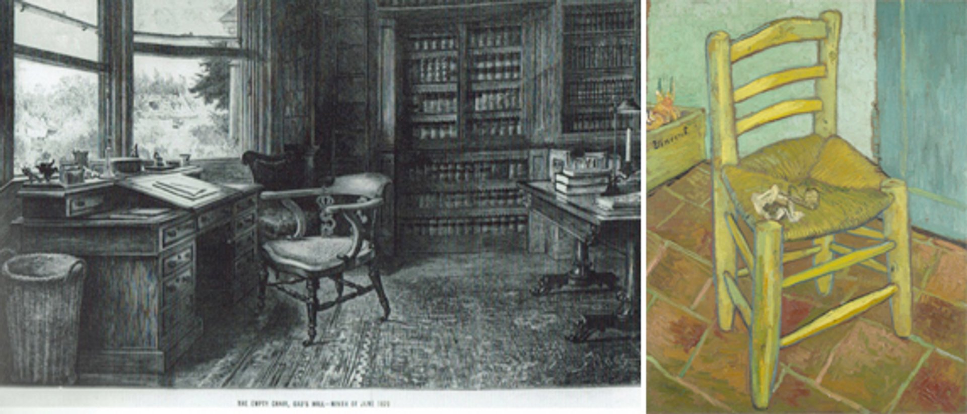 Luke Fildes’ The Empty Chair, The Graphic, Christmas 1870 and Van Gogh’s Chair (December 1888-January 1889) Fildes: Van Gogh Museum, Amsterdam (Vincent van Gogh Foundation); Van Gogh: National Gallery, London