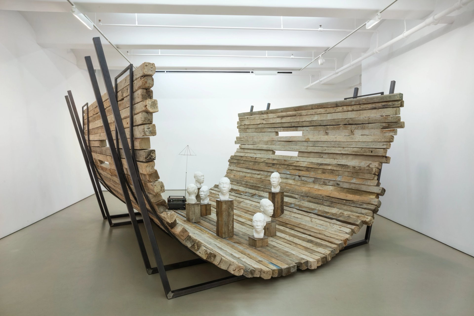 The American artist Radcliffe Bailey concentrates on Black Southern heritage in his practice. This exhibition, which marks a departure from the artist’s previous figurative photographic work, features abstract mixed-media canvases and sculptures in which Bailey condenses his own considerations on the current state of the nation and its citizens. The artist intentionally creates multiple entry points in his work, merging time, history and collective memory while questioning the beginning and ending of a narrative. A centrepiece of the exhibition, the large-scale sculpture Nommo (2019)—first shown at the Istanbul Biennial in 2019—evokes the remnants of slave ship and the history of migration. The work of the Atlanta-based artist is held in major collections, including the Metropolitan Museum of Art and the Smithsonian Museum of American Art.
