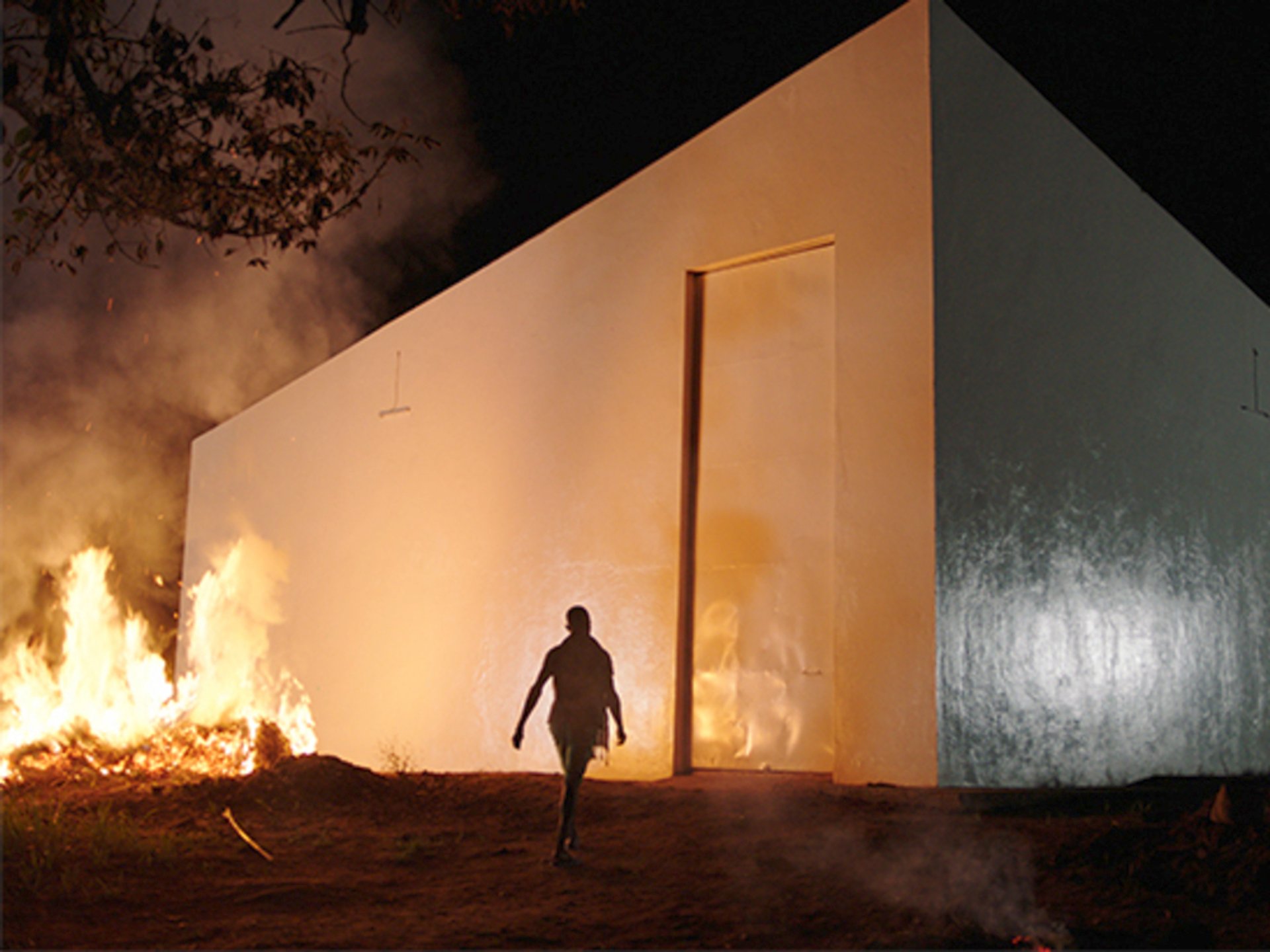 Martens, the film’s director and on-screen narrator, brings us into a project that he has initiated. Workers near the town of Lusanga are barely paid for harvesting nuts for palm oil, and the company skims off much of that. His plan is to employ the palm workers to make sculptures, which he helps them sell, hoping to buy back the land which the operating firm originally stole from them. In the process, Martens is fired and expelled from the plantation, but his team makes the transition to sculpture. The work travels to the SculptureCenter in Queens. In the meantime, a cultural center is built in Lusanga, a white modernist cube that gives the film its name.