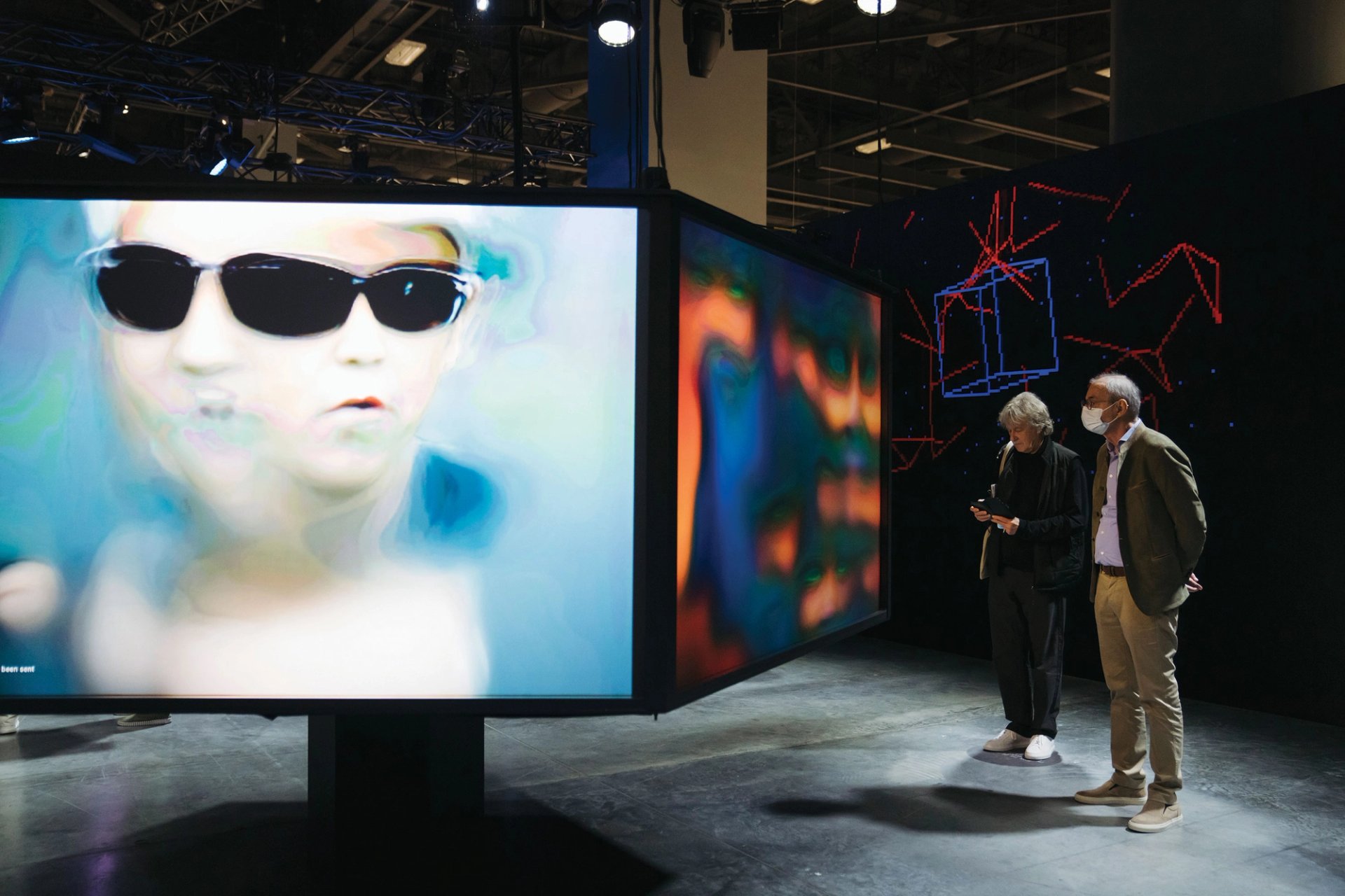 Installation view of Tezos's NFT exhibition at Art Basel in Miami Beach 2021
