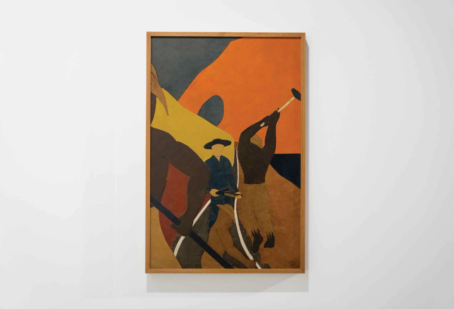Almost entirely self-taught, the artist Frank Diaz Escalet was a master at working with leather. His practice began with The House of Escalet, his New York City studio that made leather goods for Aretha Franklin and the Rolling Stones. After moving to Maine in 1974, he turned his focus to making works of art inspired by his upbringing in Puerto Rico. Chain Gang is impressively rich and detailed: a man with a shotgun to his back swings a sledgehammer while building a stretch of railroad with two other workers. The figure in the foreground is mostly out of frame, which give the viewer the feeling of looking over his shoulder, as if we, too, were part of the gang. The work is priced at $30,000.