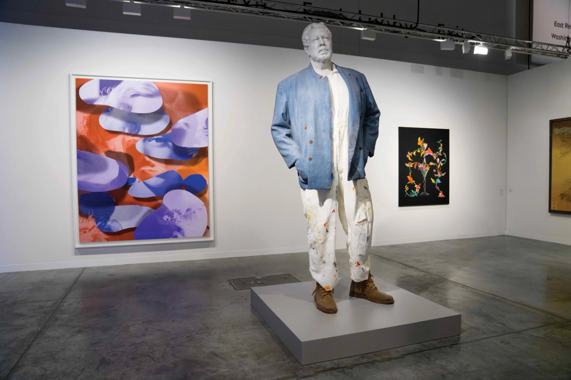 A wax effigy of the artist Julian Schnabel by Urs Fischer dominates the stand of the UK dealer Sadie Coles HQ. The huge sculpture, Untitled (Portrait of Julian) (2015), is also a candle that a prospective buyer may light. The work, priced at $2.5m, would subsequently take around four months to melt. “Degradation is part of the concept,” Coles says.