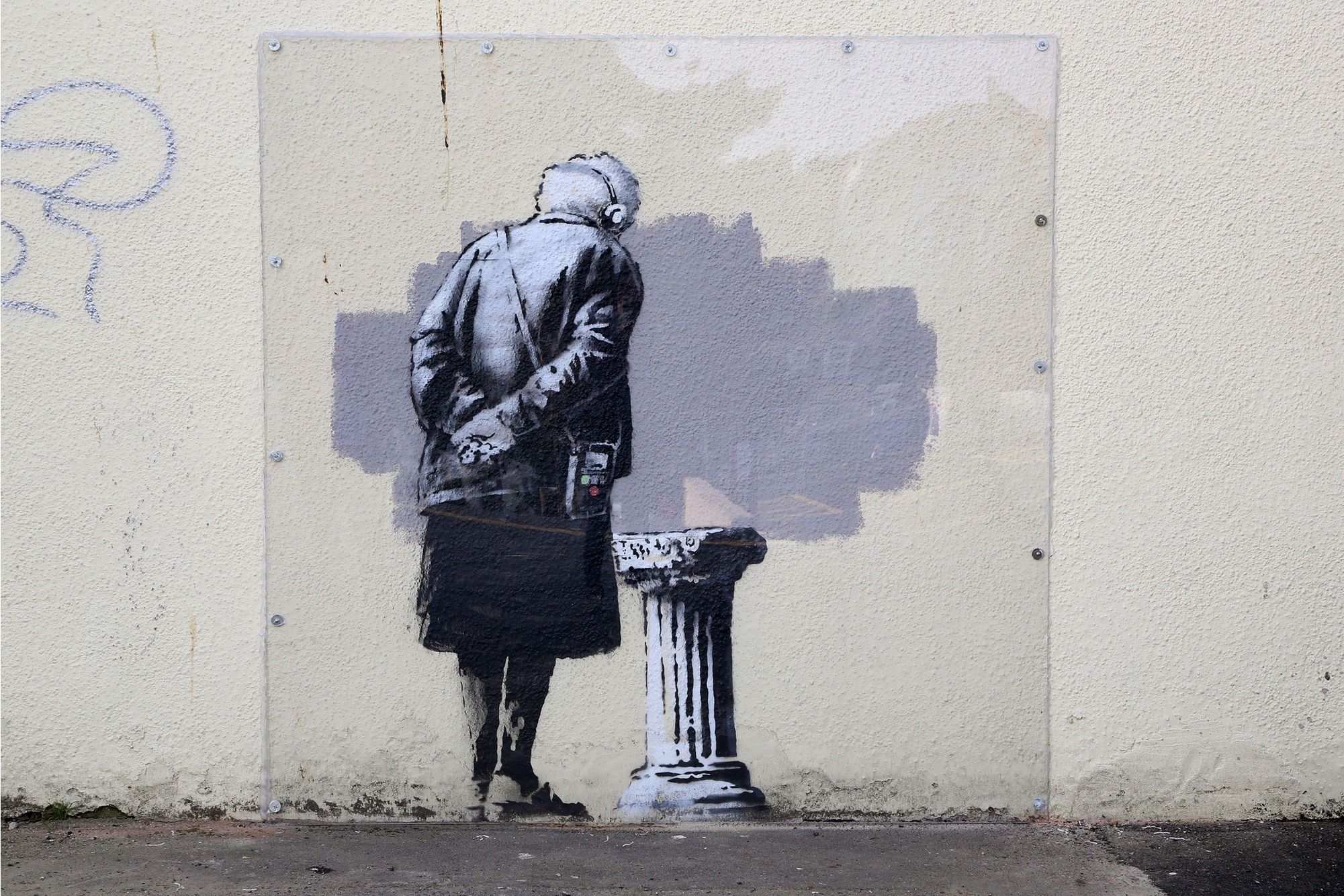 According to a book released this week in Miami by Robin Barton, one of the dealers behind their transportation, the murals Wet Dog and Stop and Search almost never made it the 8,750 miles to Miami. There was a “near-calamitous moment”, Robin Barton writes in Robin Bansky, when Wet Dog was being loaded onto a truck in Bethlehem but “slipped her leash in a last act of defiance […] and crashed to the ground in an explosion of doubt and debris”. The work survived unscathed.