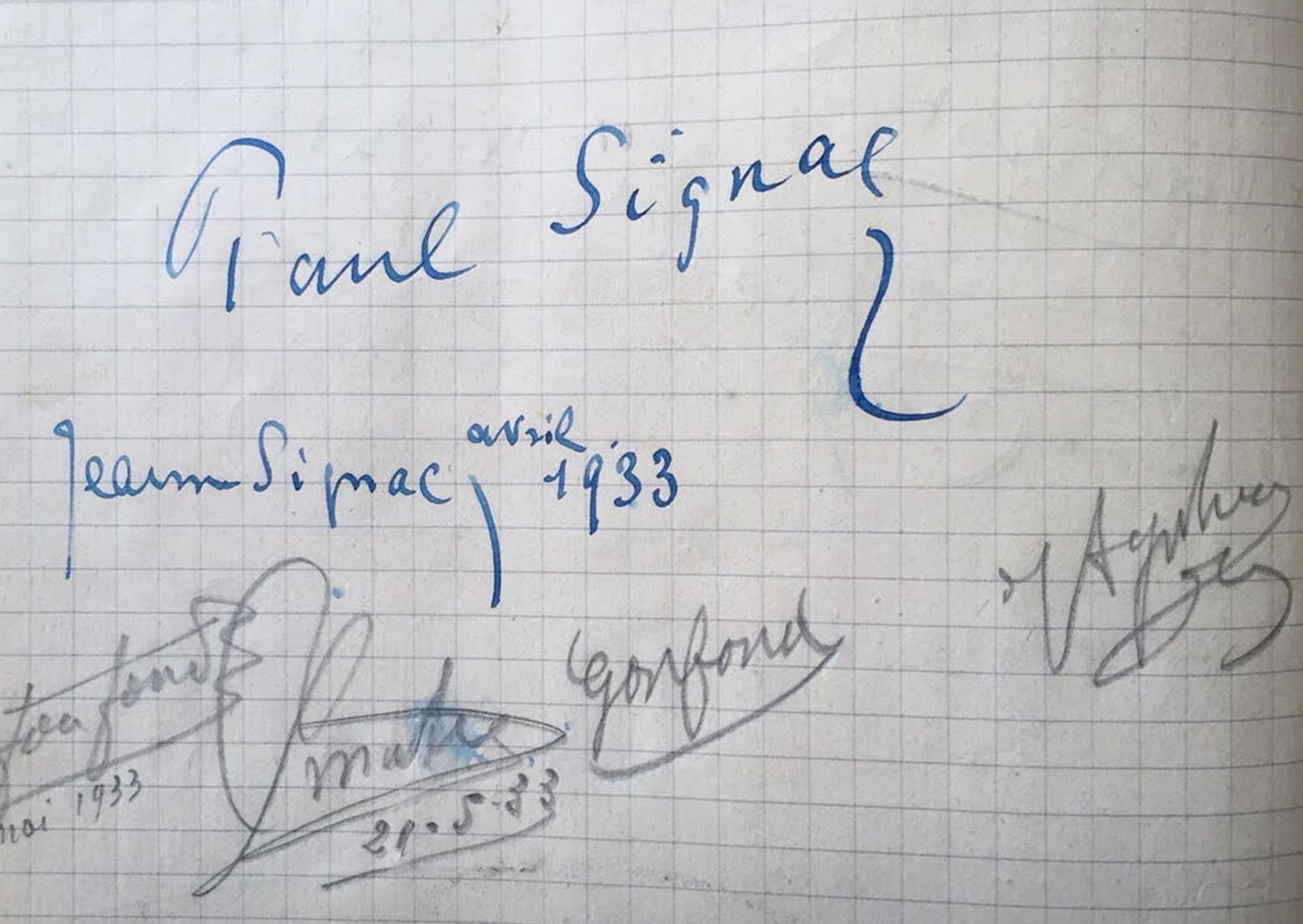 Visitors’ book for the small museum at the Saint-Paul-de-Mausole asylum, entry signed by Paul Signac and his companion Jeanne, April 1933 © Archives Municipales, Saint-Rémy-de-Provence. Photo: Martin Bailey, reproduced in Starry Night: Van Gogh at the Asylum, p. 176