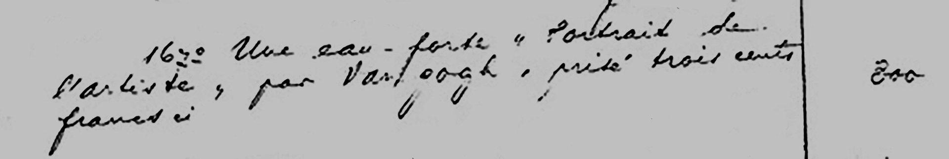 Reference to “Une eau-forte, portrait de l’artiste, par Van Gogh, prix trois cents francs”, inventory of Paul Signac’s artworks, 1935 Credit: Archives Signac, Paris