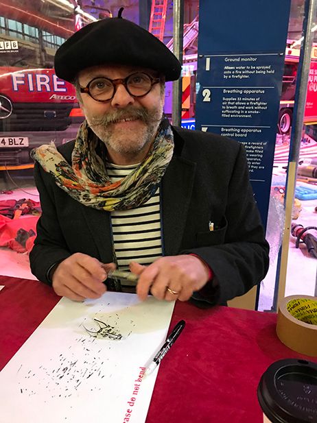 Business was brisk at the Artist’s Piss three-day launch in Soho last weekend with the Turk pre-empting any wisecrack comments by also offering a limited edition range of tee shirts emblazoned with the slogan Piss Artist. So now you can buy the artwork, wear the tee shirt or, in Webster’s case, the leather jacket and also two pairs of customised boots, and be constantly reminded that you’re never too old to challenge the system.