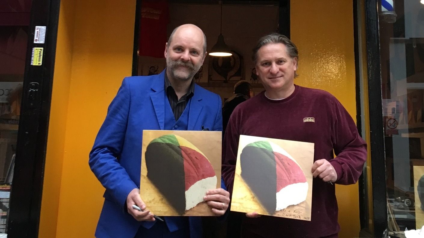 Louis Buck and Gavin Turk with Artist's Piss