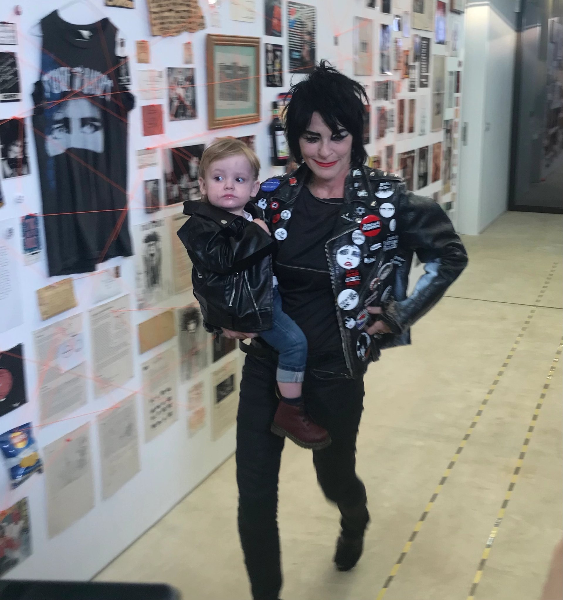 As a finale, and still accompanied by a full volume Siouxsie soundtrack, down the concrete runway came Webster herself, accompanied by her leather clad 18-month-old son Spider, who was born just after the first lockdown in June 2020, and is already a signed-up Siouxsie fan, having heard so much of the music both in and out of utero.