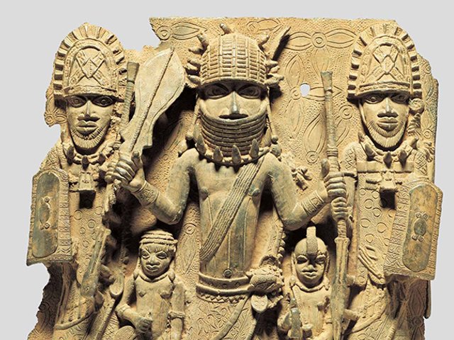 The artefacts range from commemorative sculptures of the heads of kings and reliefs telling the story of the kingdom of Benin to small decorative objects such as ivory and metal jewellery and altar figures, as well as everyday items including a cup, a bell and a lamp.