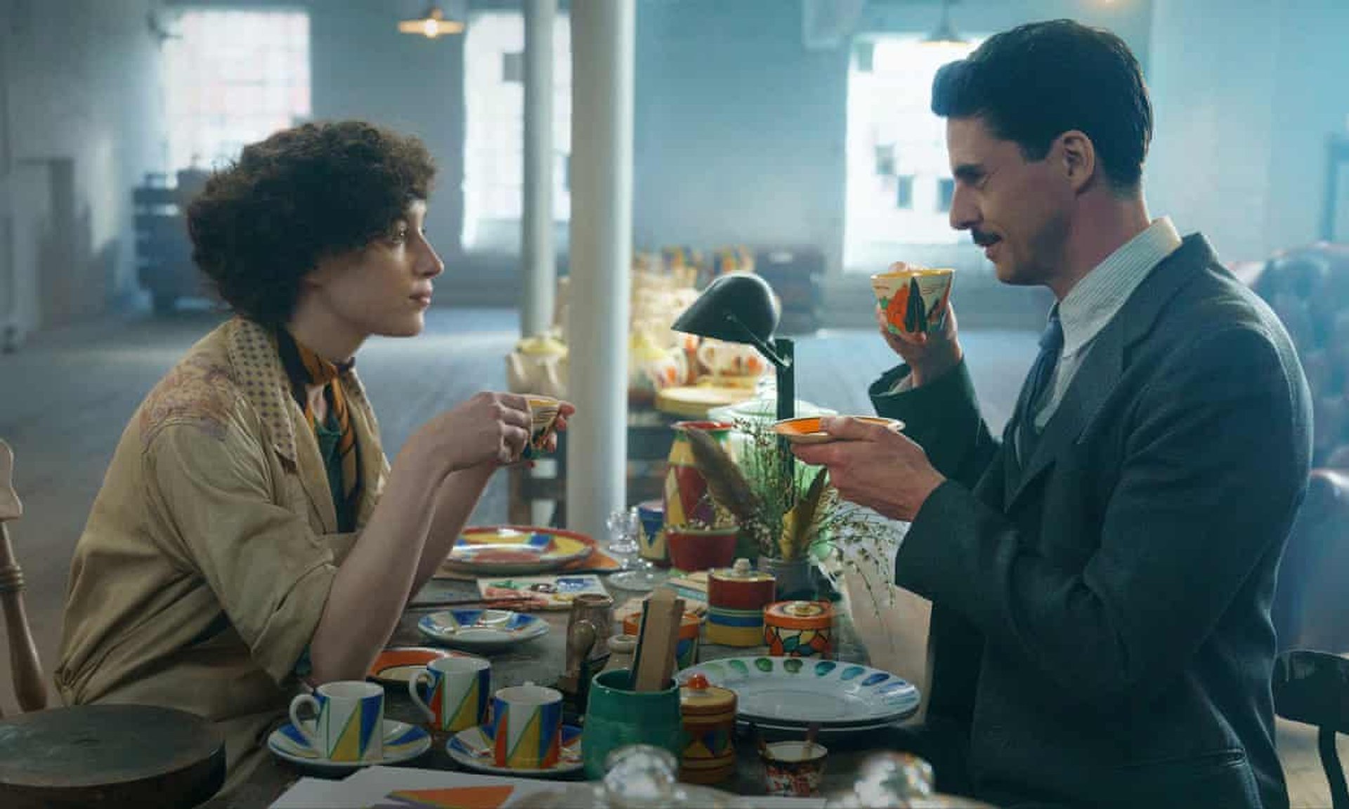 Phoebe Dynevor (Clarice Cliff) with Matthew Goode (Colley Shorter) in The Colour Room. Photograph: Caspian Films/Sky UK Limited