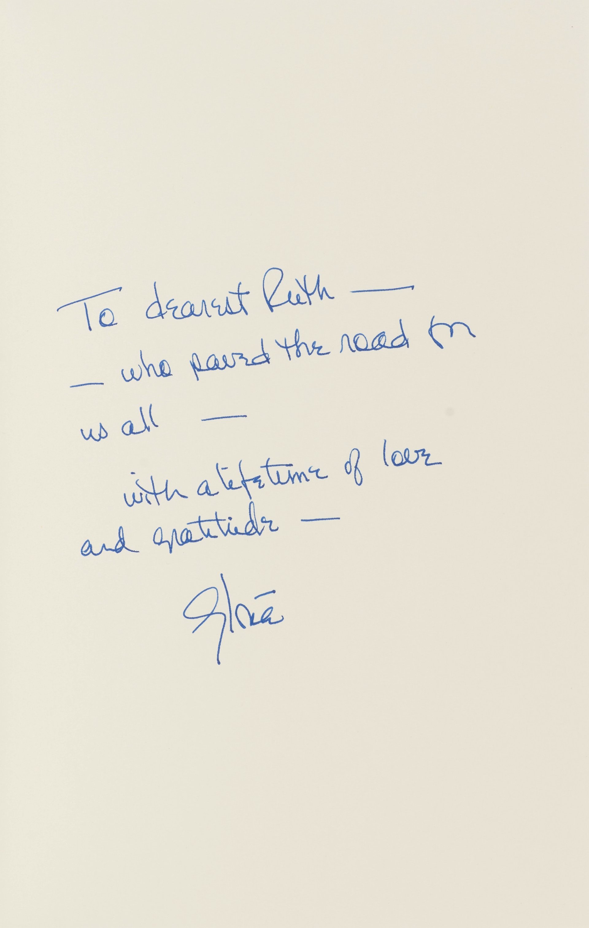 A first edition of Gloria Steinem's My Life On the Road, signed and inscribed to Ruth Bader Ginsburg Courtesy Bonhams