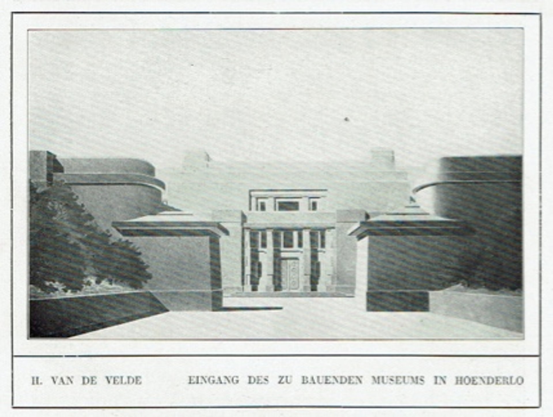 The entrance to Henry van de Velde’s Grand Museum, the architect’s impression in a book he designed for Helene Kröller-Müller.