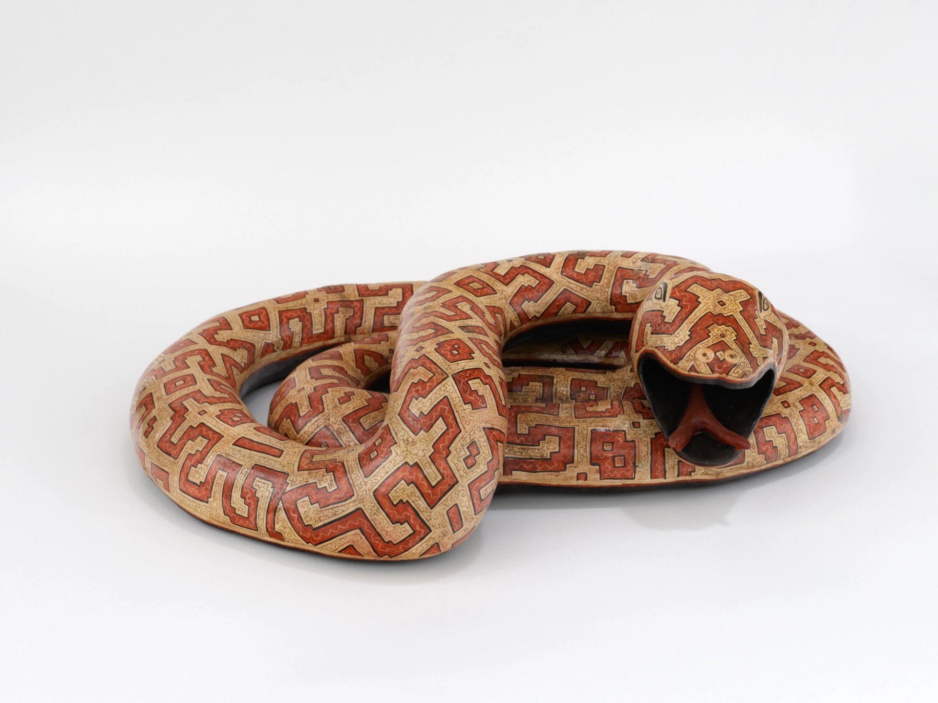 The Shipibo Conibo Centre, a Harlem-based non-profit organisation that aims to elevate the artistic and ritualistic traditions of the Shipibo-Konibo people of the Peruvian Amazon, has partnered with Salon 94 to present a captivating exhibition of handmade ceramics by the Peruvian artist Celia Vasquez Yui. Using a coiling method, an ancient ceramic technique, the artist has created a series of animal and human figures adorned with complex undulating geometric patterns endemic to the Shipibo-Konibo culture, in which the use of the hallucinogenic ayahuasca vine is central to spirituality and artistic tradition. More than 50 ceramics, like a spiraling snake, a piranha and anthropomorphic creatures, are exhibited in an altar-like fixture that aims to visualise the ceremonial context that their patterns evoke, while a soundscape of Shipibo songs floods the gallery. The artist herself is said to follow preparations and rituals akin to a Shipibo shaman when creating her work, through abstaining from sex and specific foods and chanting and blowing tobacco to ignite the ceramic kiln. The show is one of three final exhibitions on view before Salon 94 will merge with Lévy Gorvy and the dealer Amalia Dayan to form the single gallery LGDR.