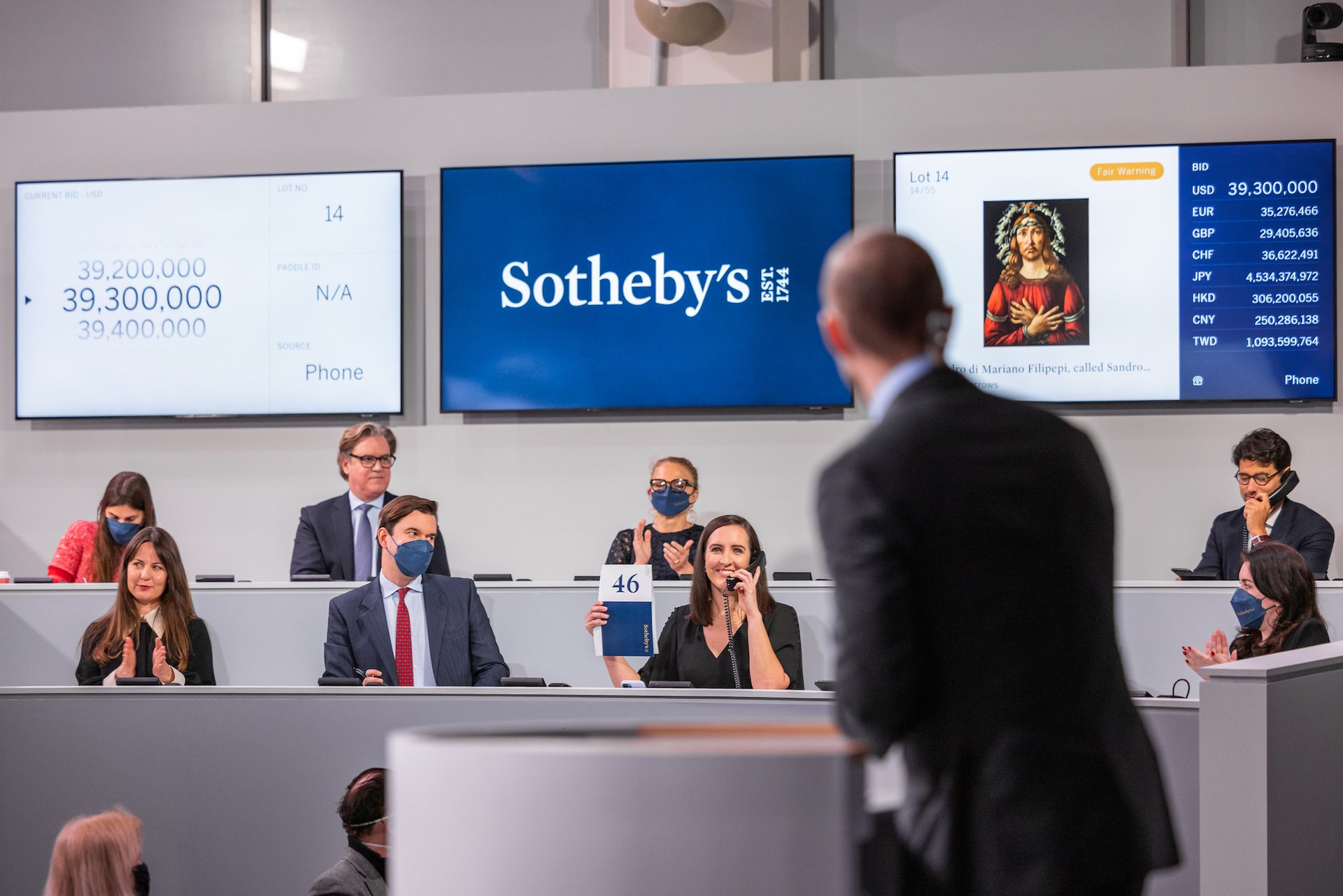 Bidding on The Man of Sorrows at Sotheby's Courtesy Sotheby's