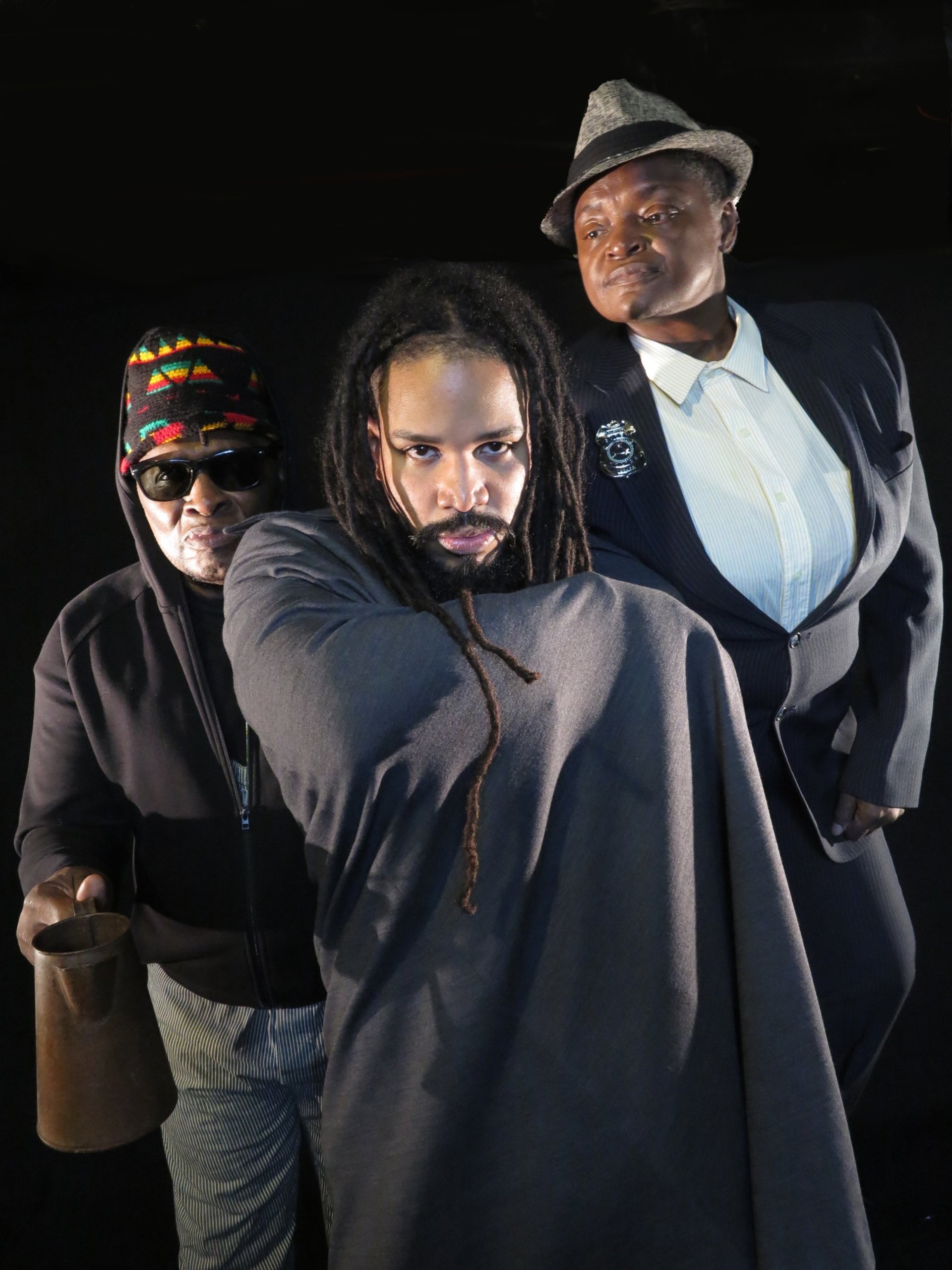 L-R: Robert Turner as Abstractionist artist Jack Brooks, Raul Diaz as the vampire Baron De Whit, Roslyn Fox as Chief of Detectives Mary Van Helsing. Photo by Jonathan Slaff.