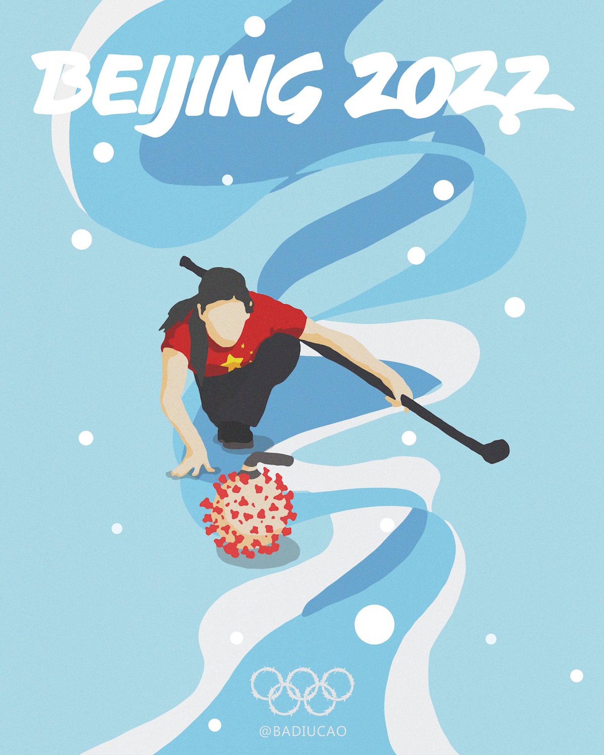 Badiucao, Curling from the series Beijing 2022 (2022) © Badiucao