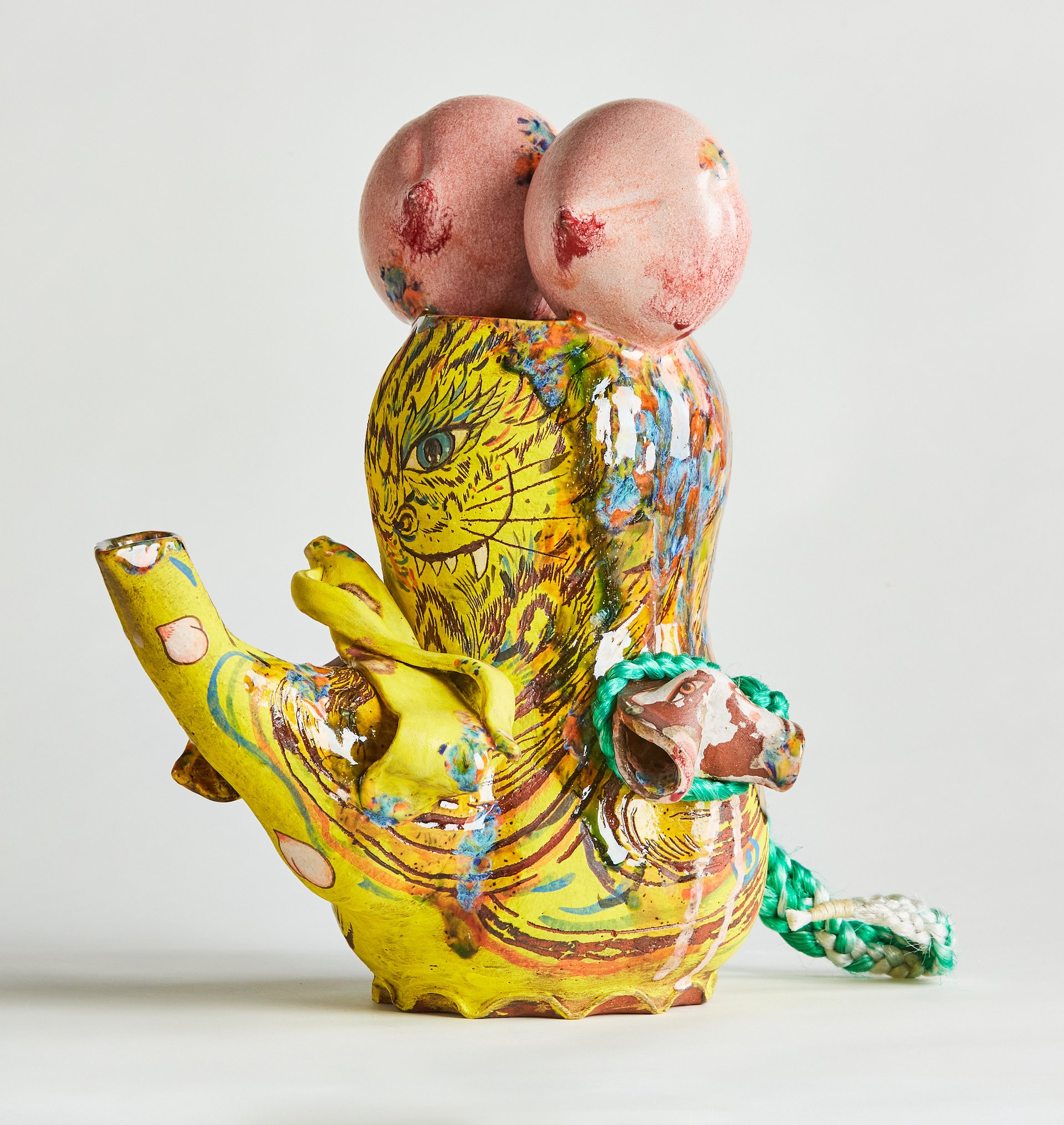 In these more than 20 dazzling ceramics and four paintings, Atlanta-based Korean American artist Jiha Moon grapples with identity in its myriad manifestations. The works combine allusions to Asian and Western art history, nods to vernacular culture of the Southern US, symbolically charged foods and more, unified by a palette dominated by the titular hue, Stranger Yellow, which Moon sees as symbolising the visibility of the US’s many Asian diasporas and communities—a charged theme after two years of rising anti-Asian racism and violence around the country. She manages to address such weighty themes in works that are nonetheless exceedingly fun. The earthenware sculpture Tiger Mama (2021), for instance, combines two strategically positioned peaches (references to her home state of Georgia, but also symbols of immortality in some Asian cultures), fortune cookies (an ostensibly Chinese delicacy popularised in the US), a banana (a disparaging term used to describe assimilated Asian Americans), and a half-woman, half-tiger figure rendered in shades of bright yellow. Each piece is full of similarly deft details and delectable discoveries.
