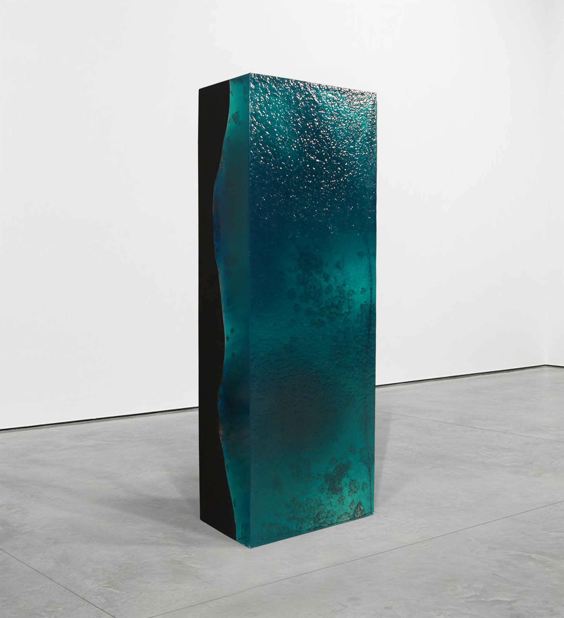 One grueling New York winter in the late 1980s—much like the one we are dredging through now—drove the mixed-media artist Ashley Bickerton to create works evoking distant, sensous seascapes. Bickerton revisits this era of his practice in this exhibition, presenting various new works that continue his Ocean Chunk series. Sculptures like the 0°36'06.2"N, 131°09'41.8"E 1 (2022)—a plinth made of fiberglass, stainless steel and resin—recreate aerial views of coral reefs according to their specific coordinates (this one pointing to a deserted part of the ocean near West Papua) while other works document more tender seaside moments, like Floating Family Footprints (Flow Tide) 1 (2022), in which the artist has immortalised the footprints of his wife and child in resin and fiberglass. Once associated with the Neo-Geo movement (short for Neo-Geometric Conceptualism, and known for its critique of consumer culture) in the 1980s alongside artists like Jeff Koons, Bickerton chose to distance himself from the New York art world and the machinations of the art market in the early 1990s, relocating to Bali, where he continues to live and work under sunnier skies.