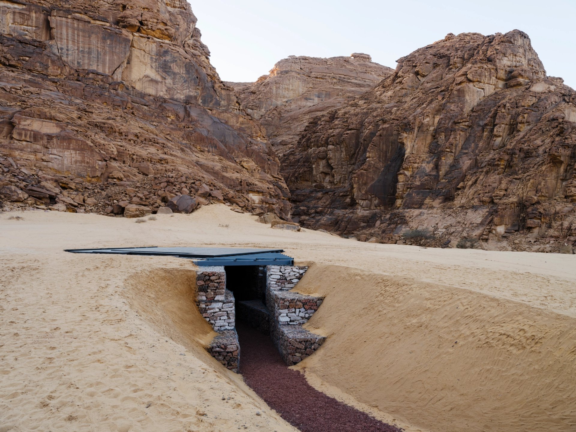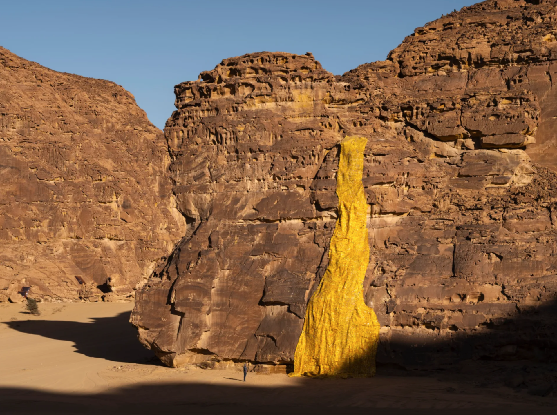For the second edition of Desert X AlUla, site-specific works are again dotted around the region that has been described as a “living museum”, but this time the installations are displayed in a different location. Fifteen works in total are divided across four separate canyons; stand-outs include Canadian artist Stephanie Deumer’s underground greenhouse (Under the Same Sun), which has been carved out of the sand, creating a cool oasis hidden from the searing sun. Serge Attukwei Clottey’s shimmering piece Gold Falls, made from plastic containers used in Ghana for storing water, adorns a rock face, resulting in one of the most dramatic installations in the exhibition.