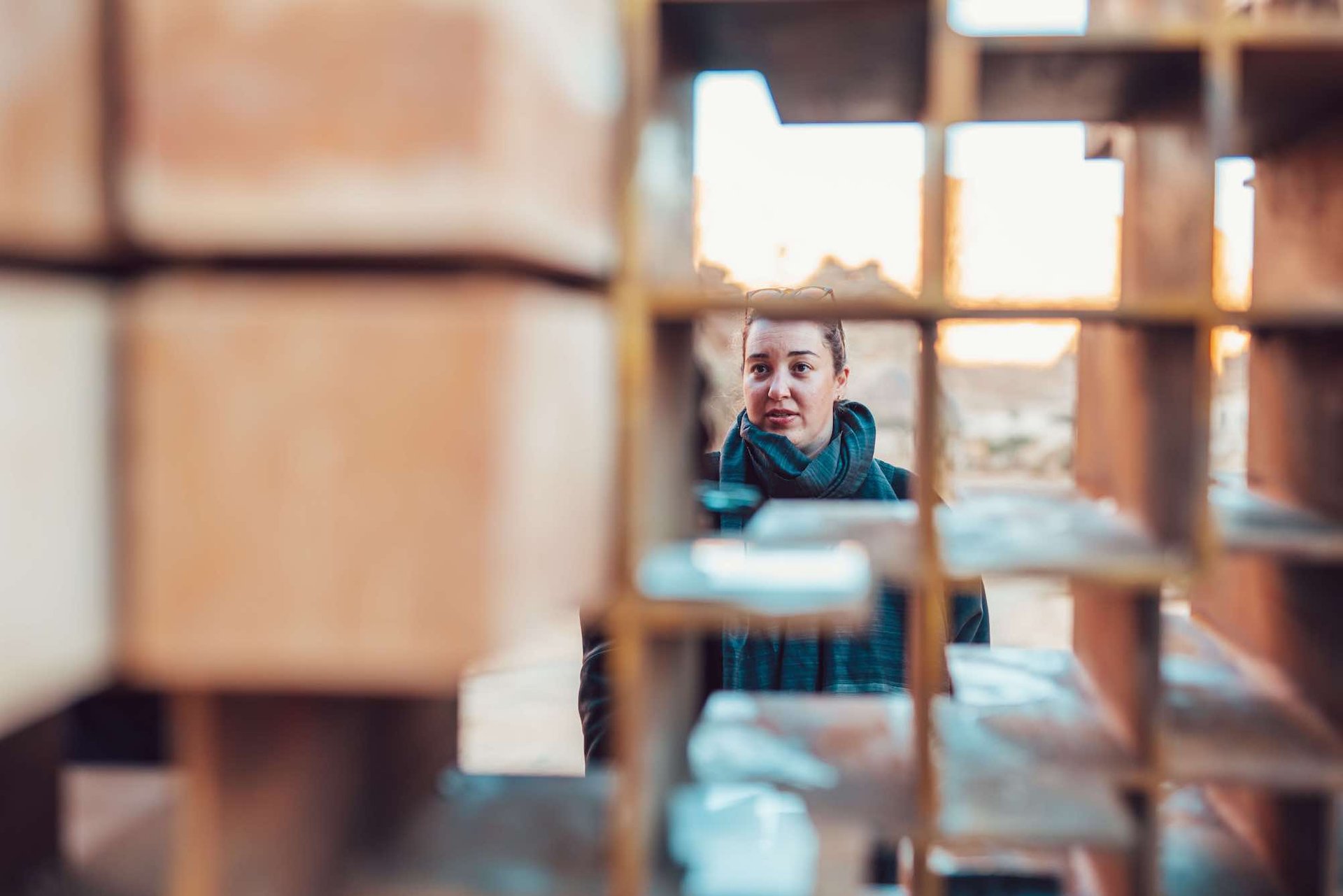 Crucially, I wanted to do something that completely respects the environment. I did not want to make something that would fight against the environment but instead looked like it belonged. From a distance, I wanted it to look like a pixelated rock face. The location is also important; it is raised on a bed and when you sit inside, you see the whole view of the canyon. Working here was amazing because it’s been so peaceful. My piece gets sun from 11 until three or four o’clock, then the back of it changes completely as the sun sets.