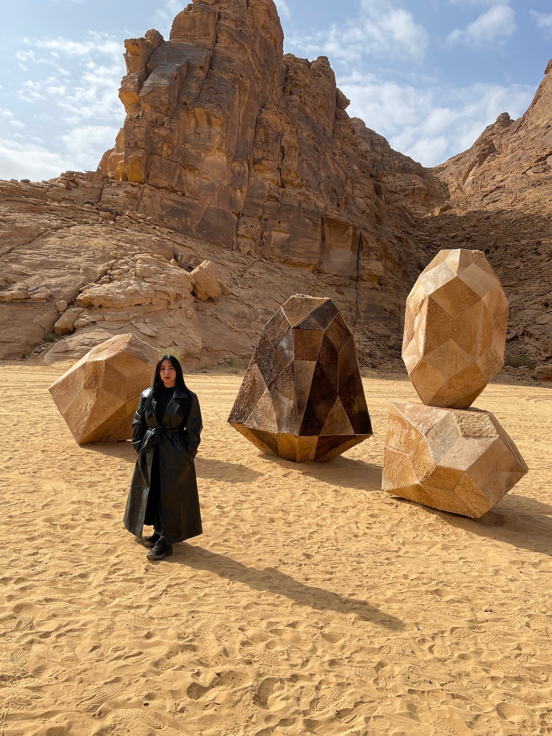 Dana Awartani with her work Where the Dwellers Lay (2022) Courtesy Desert X AlUla