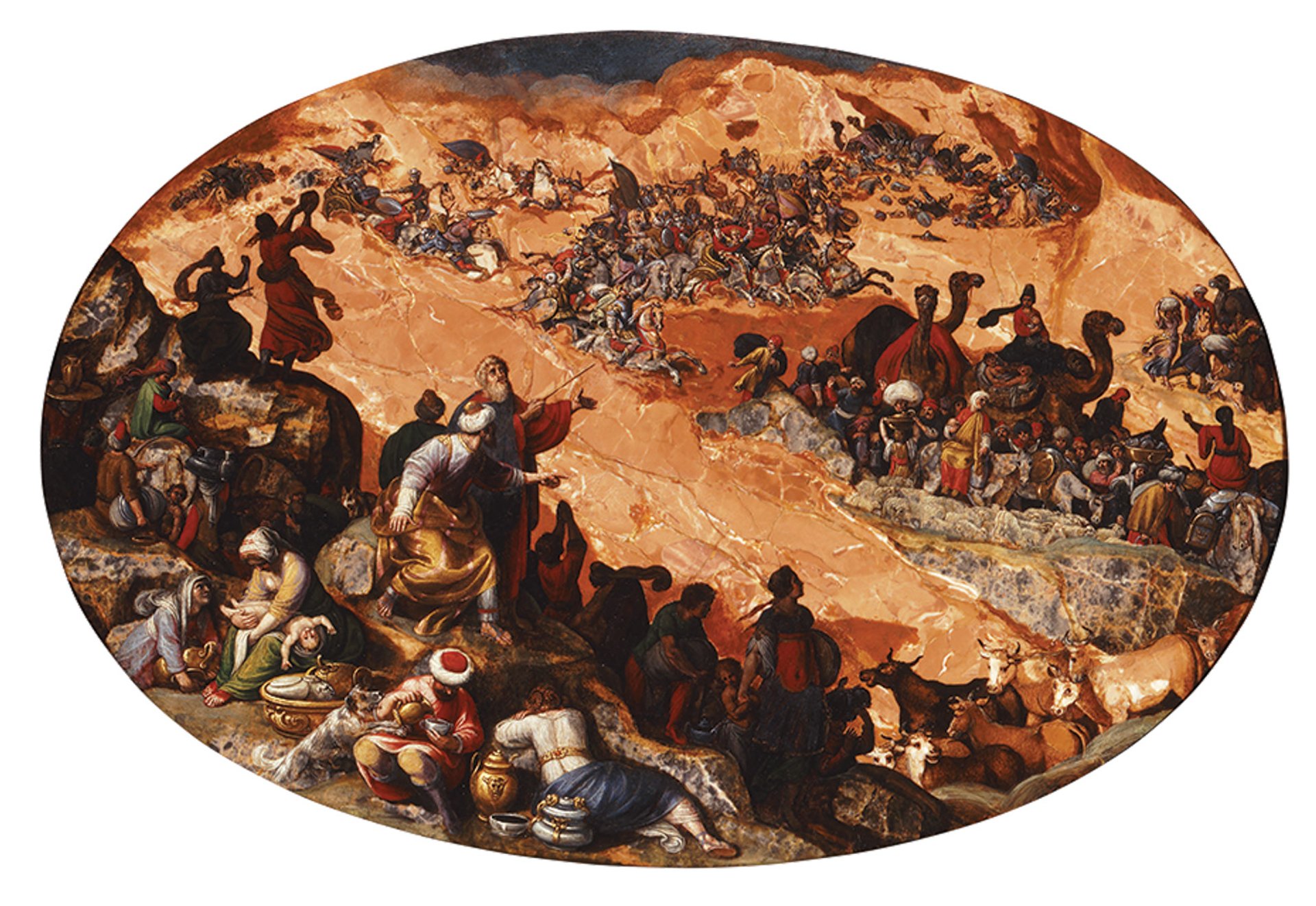 The brecciated limestone of Antonio Tempesta’s Crossing of the Red Sea (1610s) conveys the water’s movement Museum of Fine Arts, Budapest