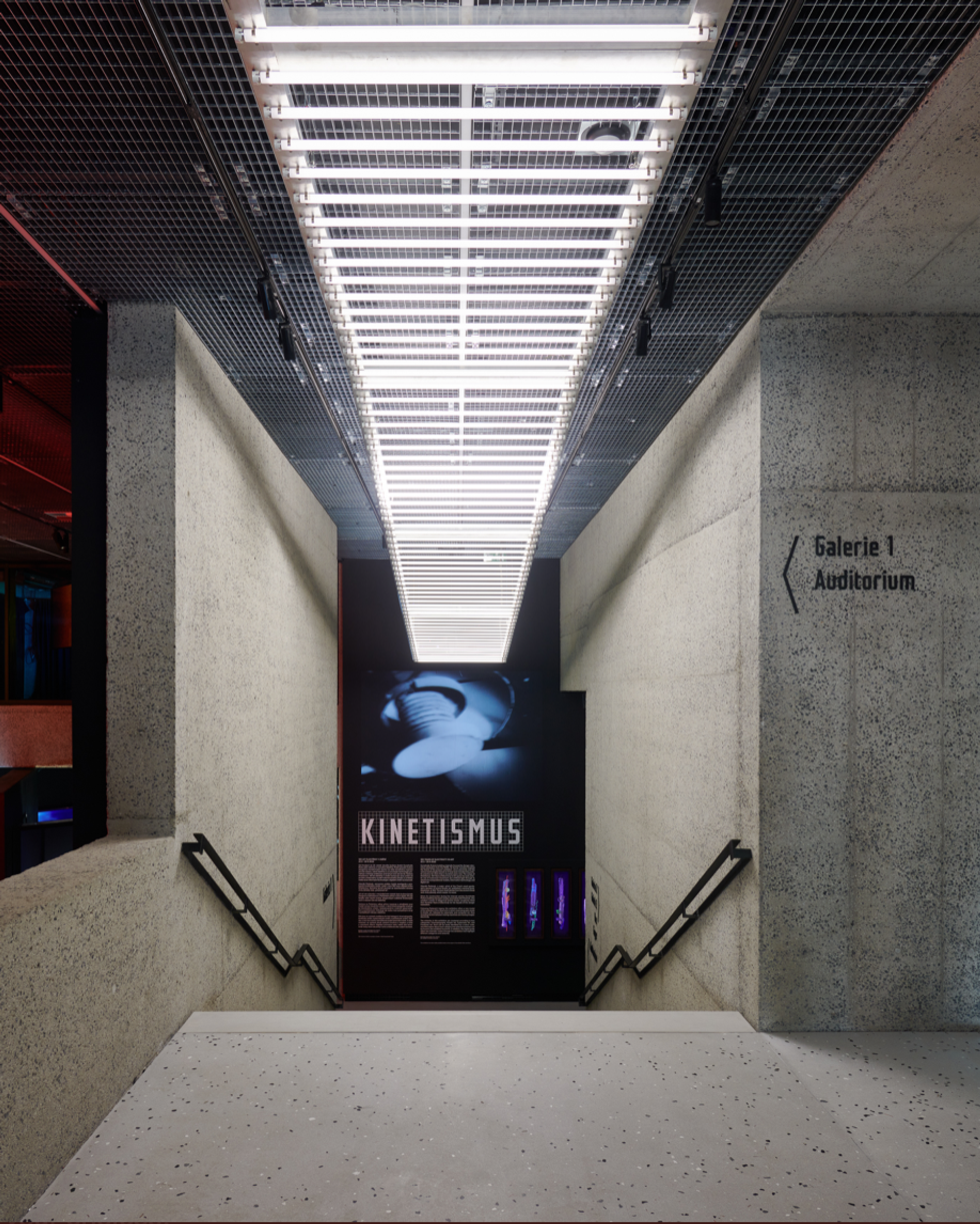 Installation view of Kinetismus: 100 Years of Electricity in Art at Kunsthalle Praha.