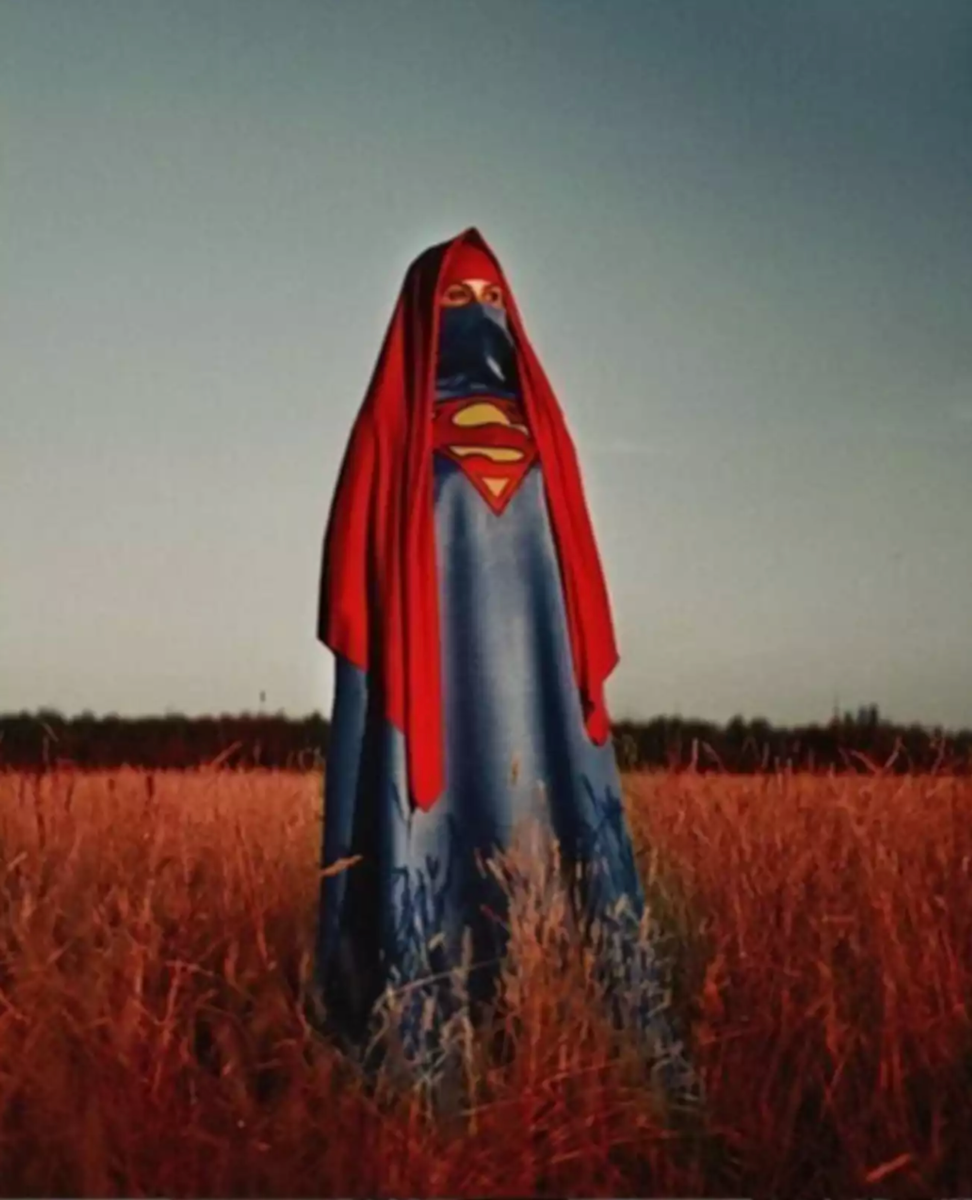 One of the best booths in the contemporary section is Loft Art Gallery, based in Casablanca, where the striking, large-scale photograph Call your mom or another relative (2022) by the Moroccan photographer Mous Lamrabat depicting a woman dressed in a Superman-style Islamic dress, was bought for $7,100. The gallery also sold a mixed media and embroidery work by Marion Boehm titled Nadira (2022) for $32,000 and an untitled (2013) Mohamed Melehi work for around $90,000.