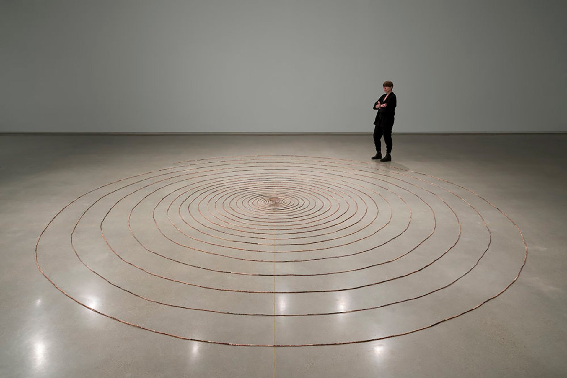 The artist, born in 1953, earned her bachelor's degree from the University of Calgary and previously studied at the Alberta College of Art and Design. In the 1980s she began making large-scale installations, some that were site-specific and used organic materials. Her works often feature recurring geometric patterns like grids or lines, or visually meditative undulating spirals, such as the work Wave (2018) featured in her solo exhibition Calling Stones (Conversations) at the Art Gallery of Alberta in 2018.
